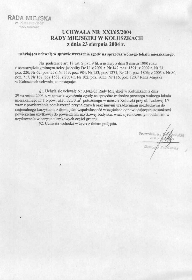 Uchwała w sprawie wyrażenia zgody na sprzedaż nieruchomości w drodze bezprzetargowej na rzecz Przedsiębiorstwa Agat Sp. z o.o. w Koluszkach ul. Paderewskiego 1uchylenia uchwały w sprawie wyrażenia zgody na spzredaż wolnego lokalu mieszkalnego
