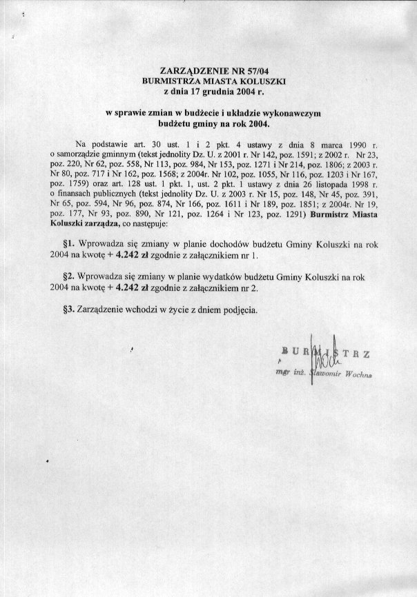 w sprawie zmian w bud偶ecie i uk艂adzie wykonawczym bud偶etu gminy na rok 2004.