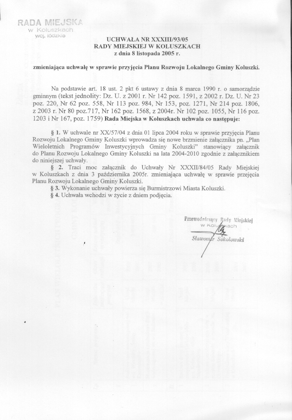 zmieniaj膮ca uchwa艂臋 w sprawie przyj臋cia Planu Rozwoju Lokalnego Gminy Koluszki