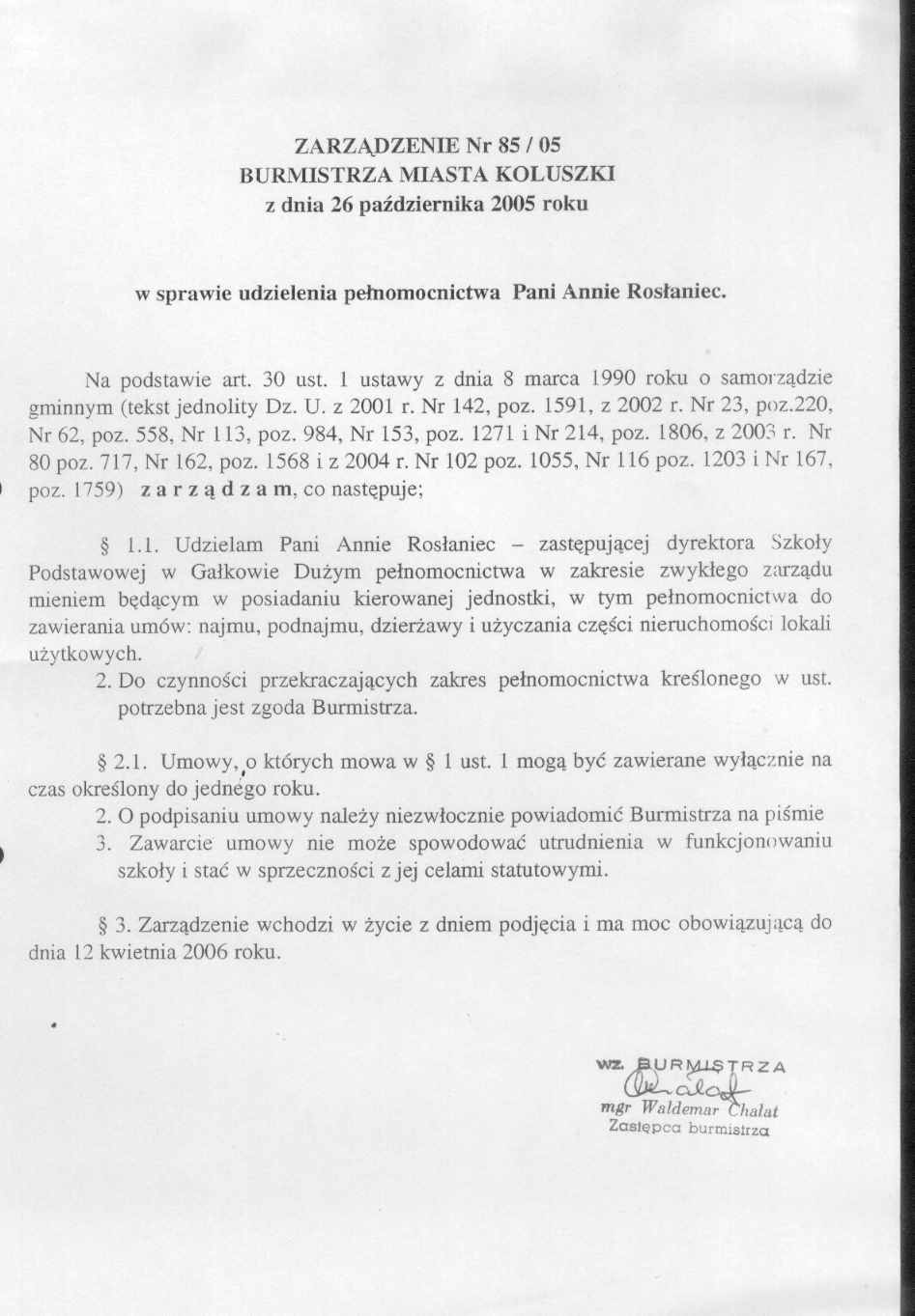 w sprawie udzielenia pe艂nomocnictwa Pani Annie Ros艂aniec.