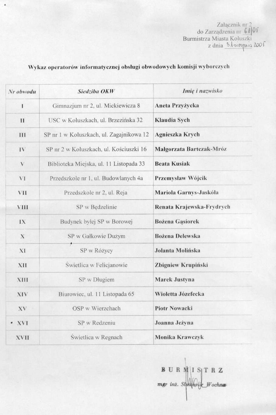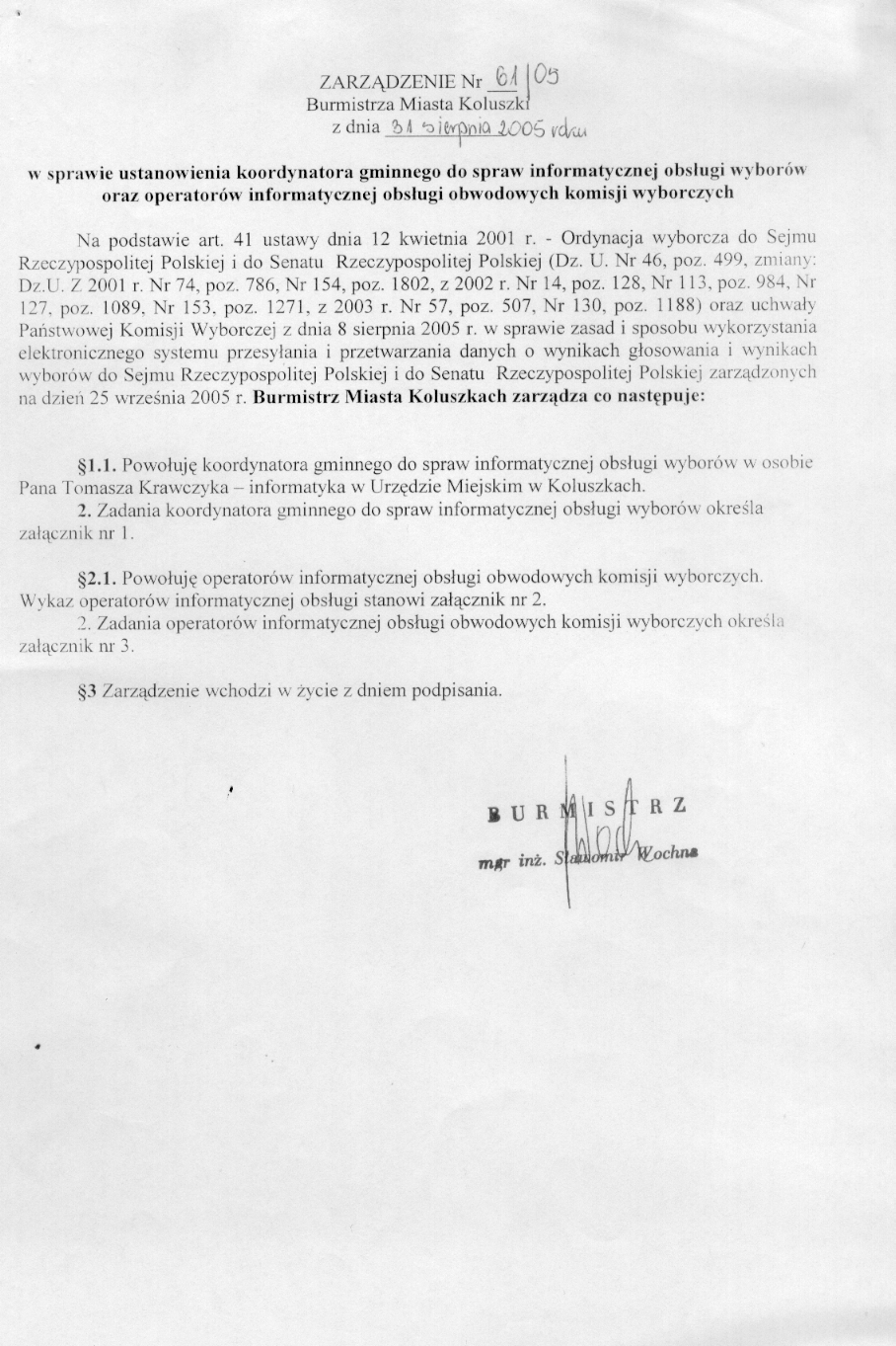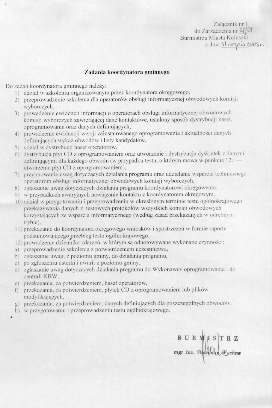 w sprawie ustanowienia koordynatora gminnego do spraw informatycznej obs艂ugi wybor贸w oraz operator贸w informatycznej obs艂ugi obwodowych komisji wyborczych