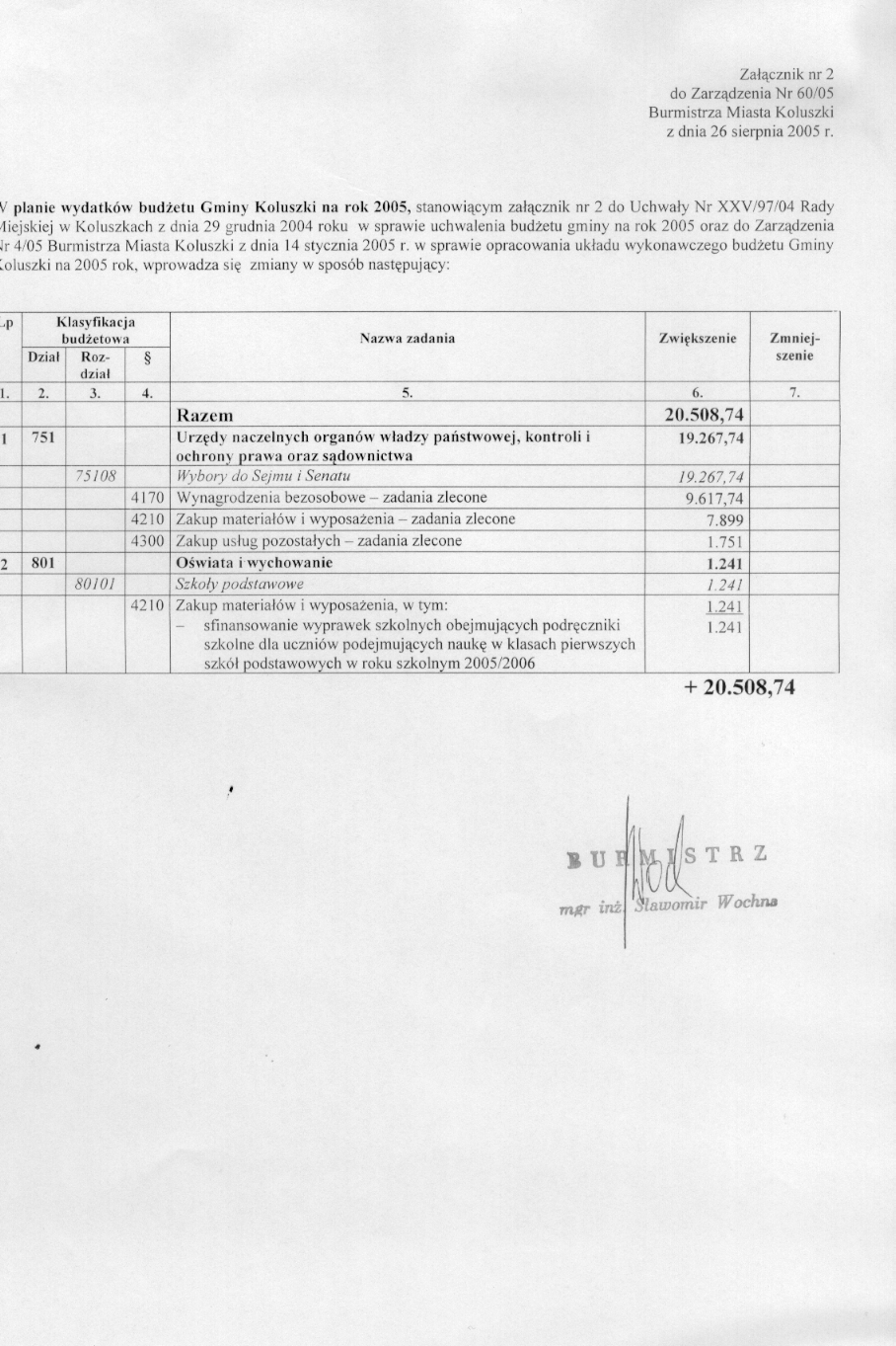 w sprawie zmian w bud偶ecie i uk艂adzie wykonawczym bud偶etu gminy na rok 2005.