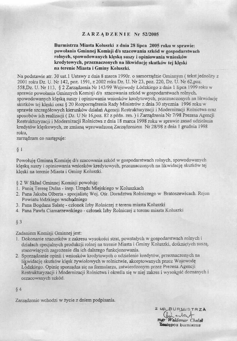 w sprawie powo艂nia Gminnej Komisji d/s szacowania szk贸d w gospodarstwach rolnych, spowodowanych kl臋sk膮 suszy i opiniowania wniosk贸w kredytowych, przeznaczonych na likwidacj臋 skutk贸w kl臋ski na terenie Miasta i Gminy Koluszki