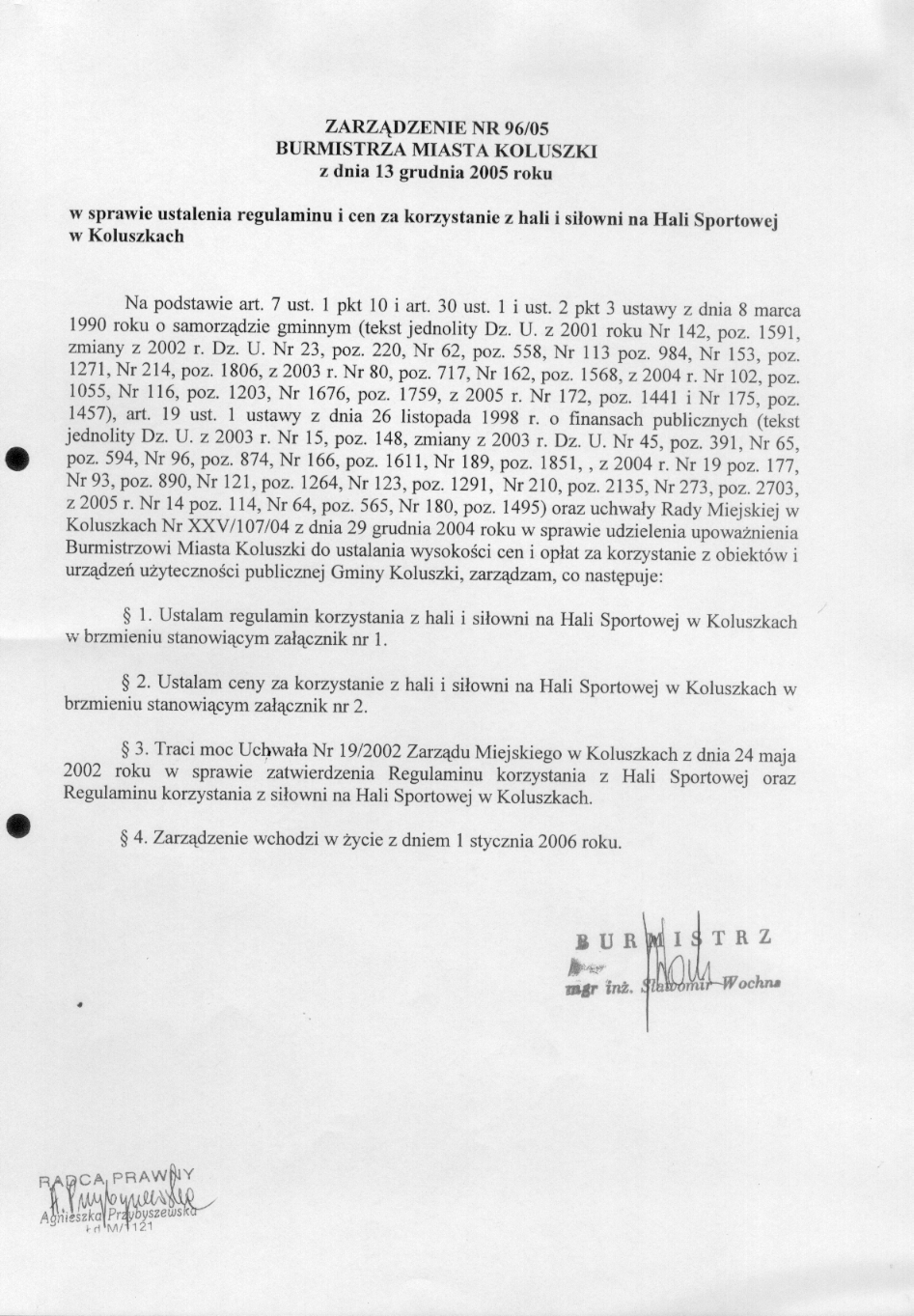 w sprawie ustalenia regulaminu i cen za korzystanie z hali i si艂owni na Hali Sportowej w Koluszkach