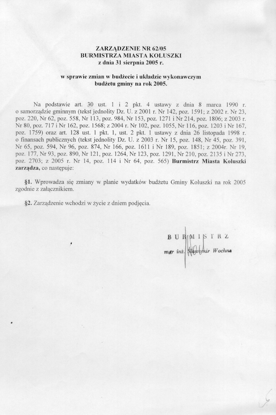 w sprawie zmian w bud偶ecie i uk艂adzie wykonawczym bud偶etu gminy na rok 2005.