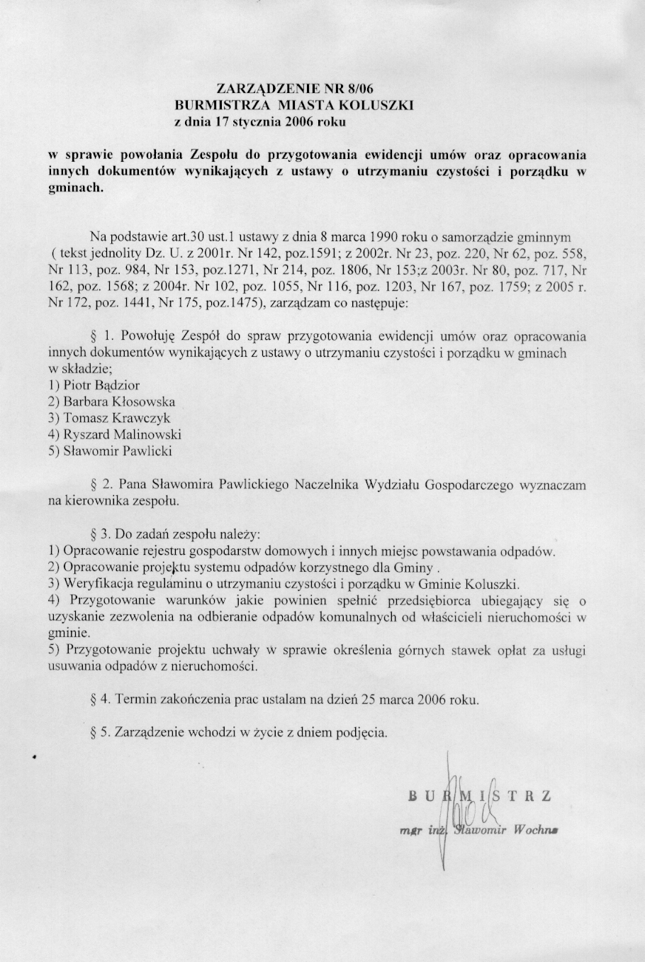 w sprawie powo艂ania Zespo艂u do przygotowania ewidencji um贸w oraz opracowania innych dokument贸w wynikaj膮cych z ustawy o utrzymaniu czysto艣ci i porz膮dku w gminach.
