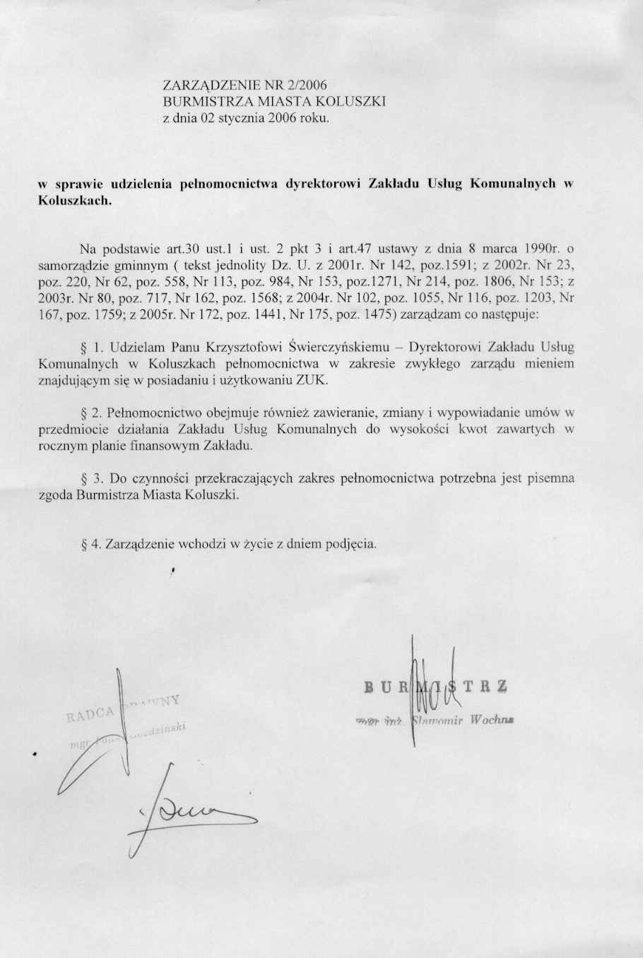 w sprawie udzielenia pe艂nomocnictwa dyrektorowi Zak艂adu Gospodarki Komunalnej w Koluszkach