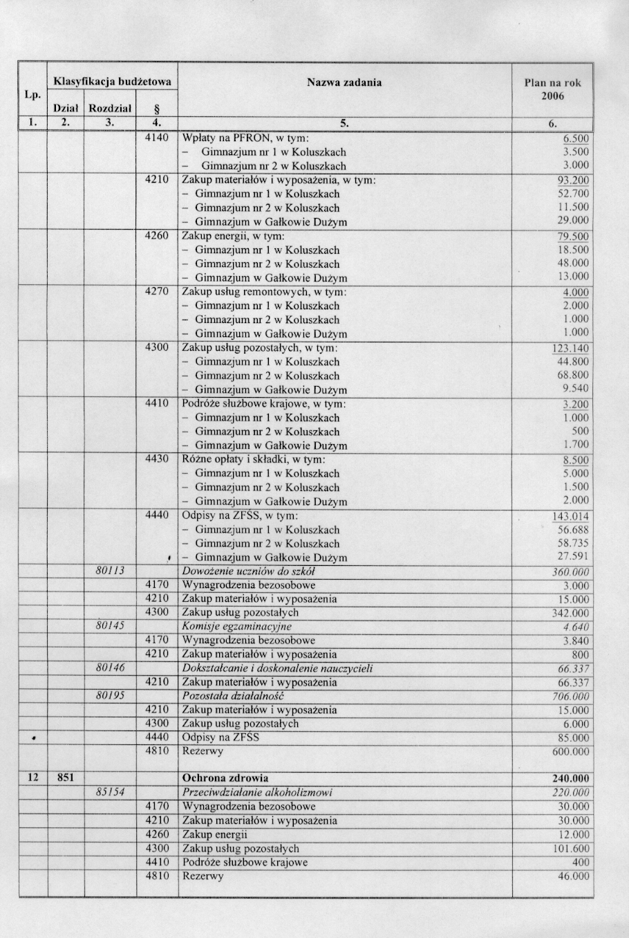 w sprawie opracowania układu wykonawczego budżetu Gminy Koluszki na 2006 r.