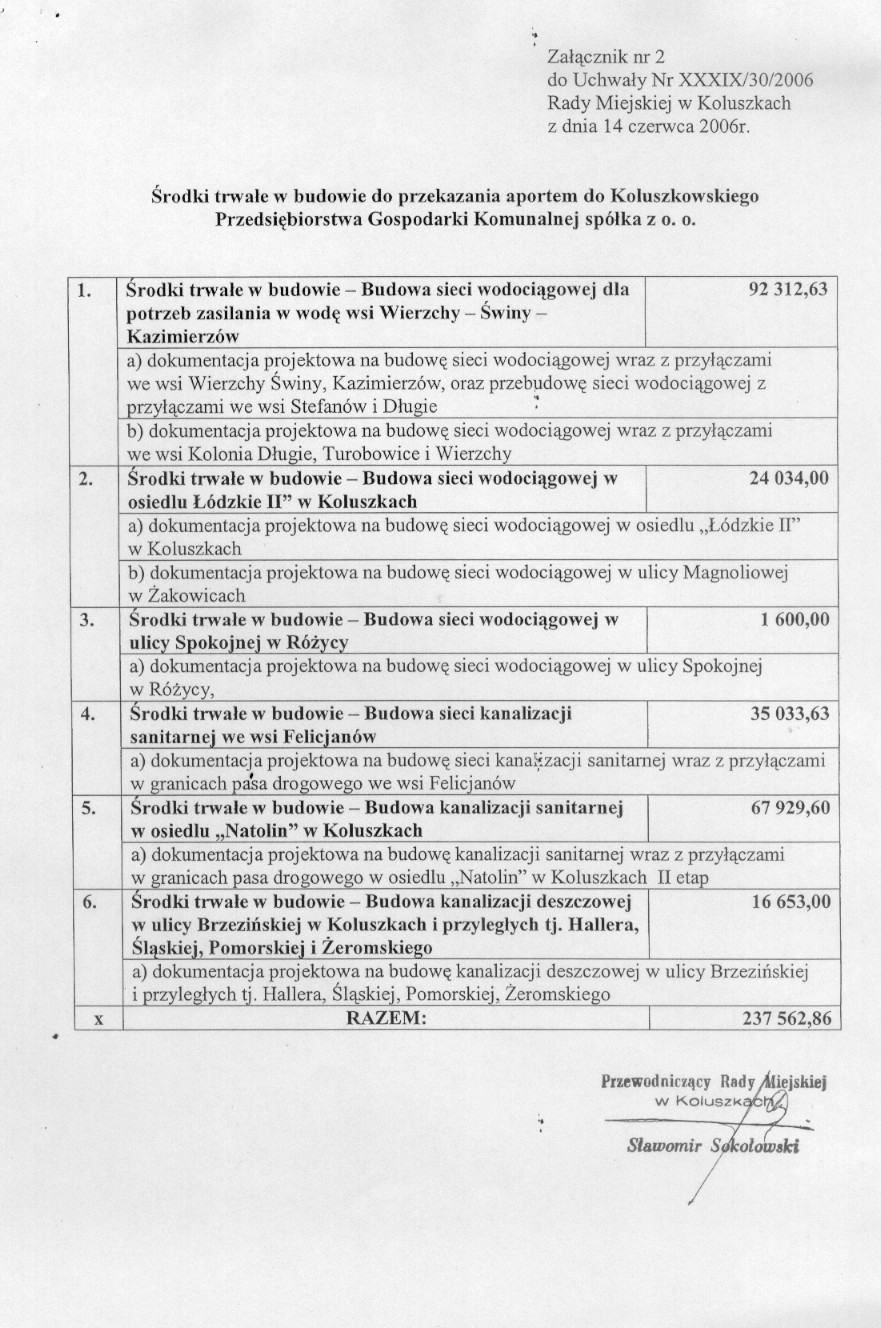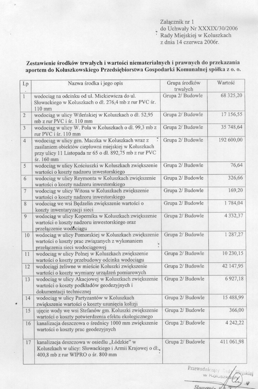 w sprawie wyra偶enia zgody na wniesienie aportu do Koluszkowskiego Przedsi臋biorstwa Gospodarki Komunalnej sp贸艂ka z o.o.