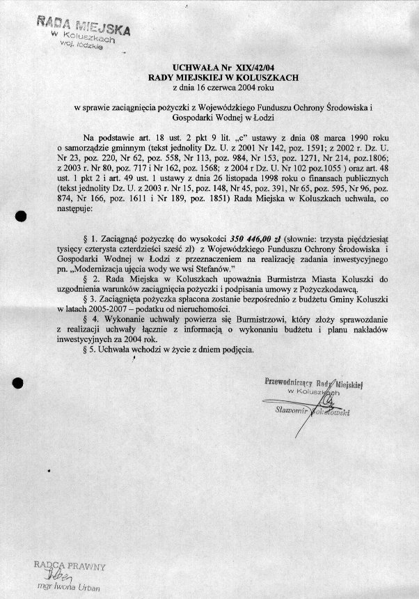 Uchwa艂a w sprawie zaci膮gni臋cia pop偶yczki z Wojew贸dzkiego Funduszu Ochrony 艢rodowiska i Gospodarki Wodnej w 艁odzi