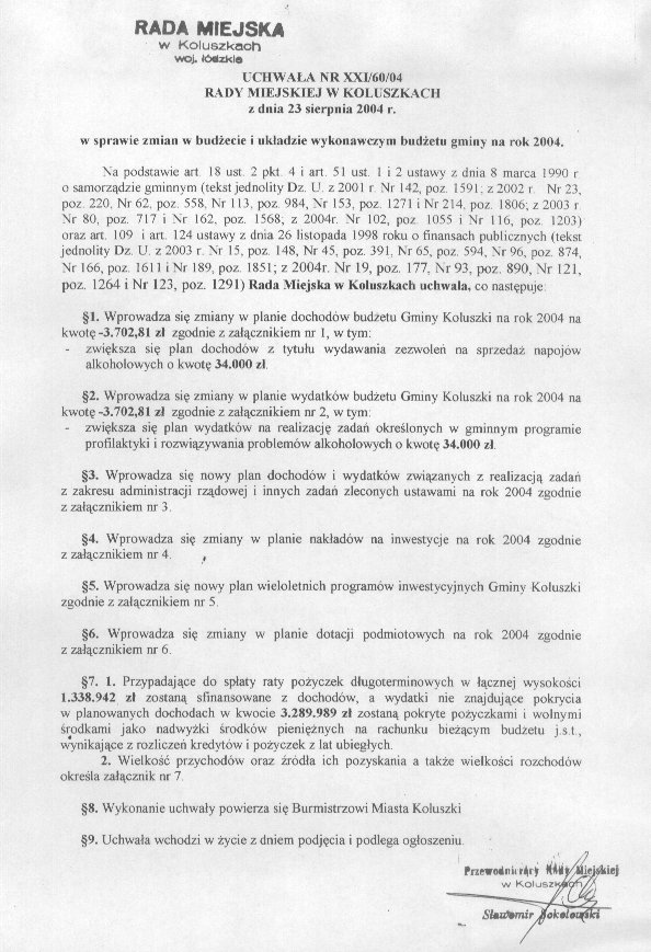 Uchwa艂a w sprawie zmiany w bud偶ecie i uk艂adzie wykonawczym bud偶etu gminy na rok 2004.