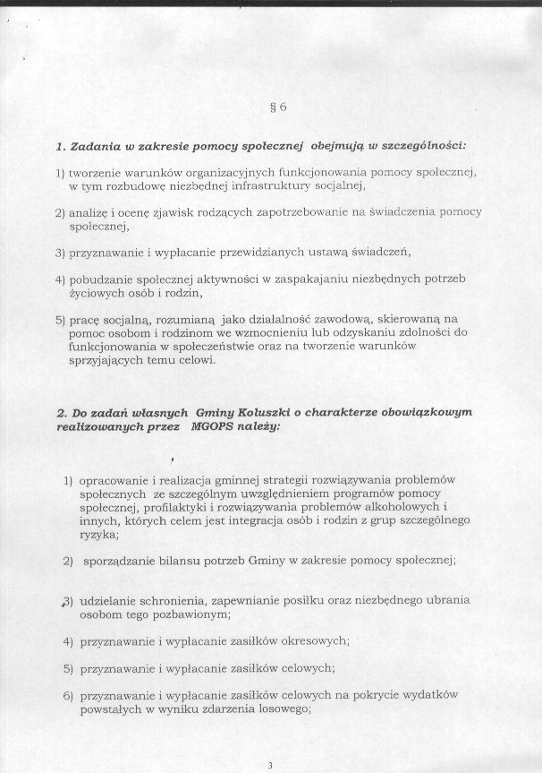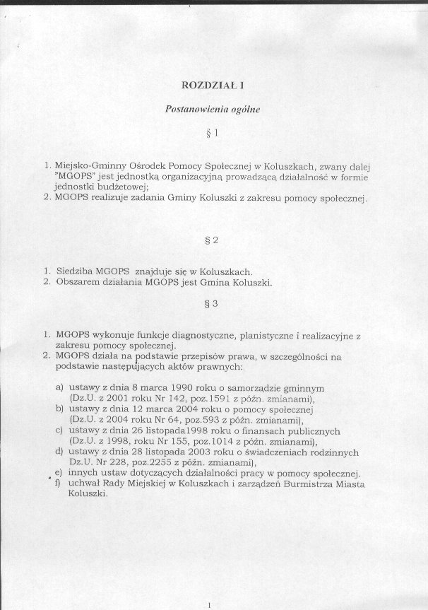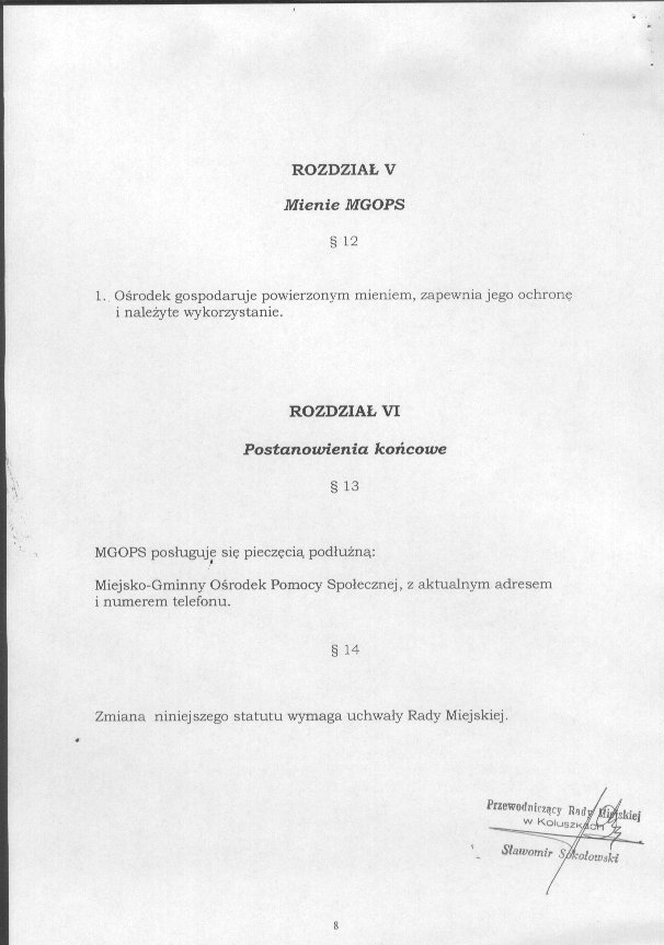 Uchwa艂a w sprawie Statutu Miejsko-Gminnego O艣rodka Pomocy Spo艂ecznej w Koluszkach