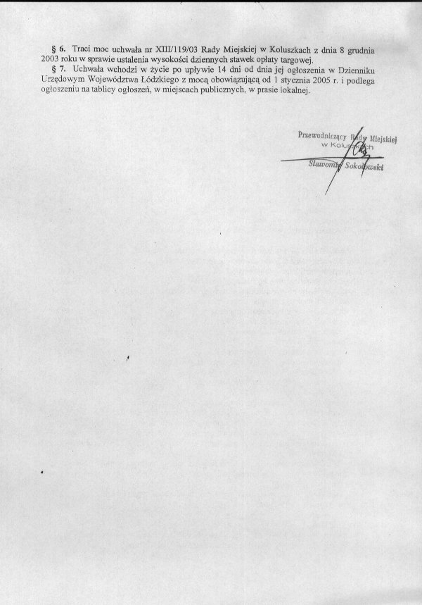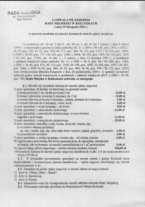 Uchwa艂a w sprawie ustalenia wysokosci dziennych stawek op艂aty targowej.