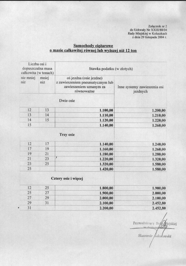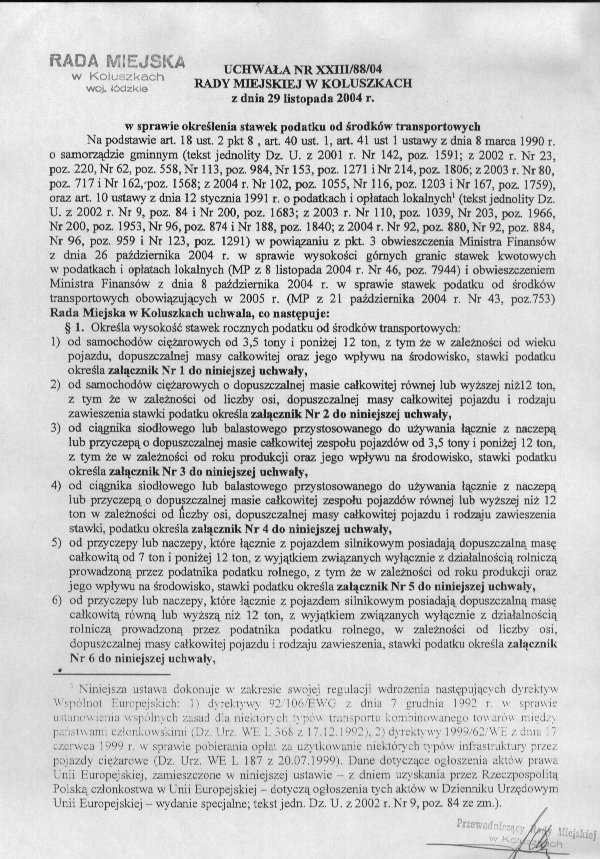 Uchwa艂a w sprawie okre艣lenia stawek podatku od 艣rodk贸w transportowych.