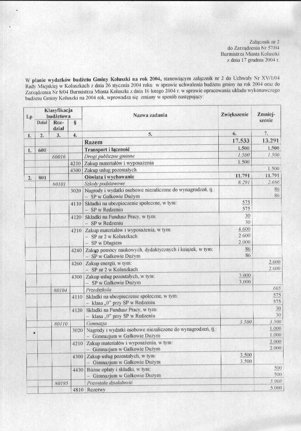 w sprawie zmian w bud偶ecie i uk艂adzie wykonawczym bud偶etu gminy na rok 2004.