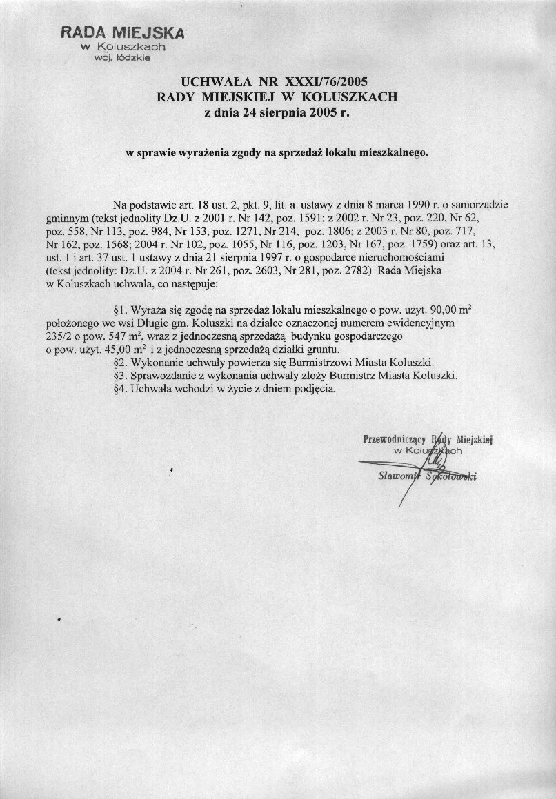 w sprawie wyra偶enia zgody na sprzeda偶 lokalu mieszkalnego