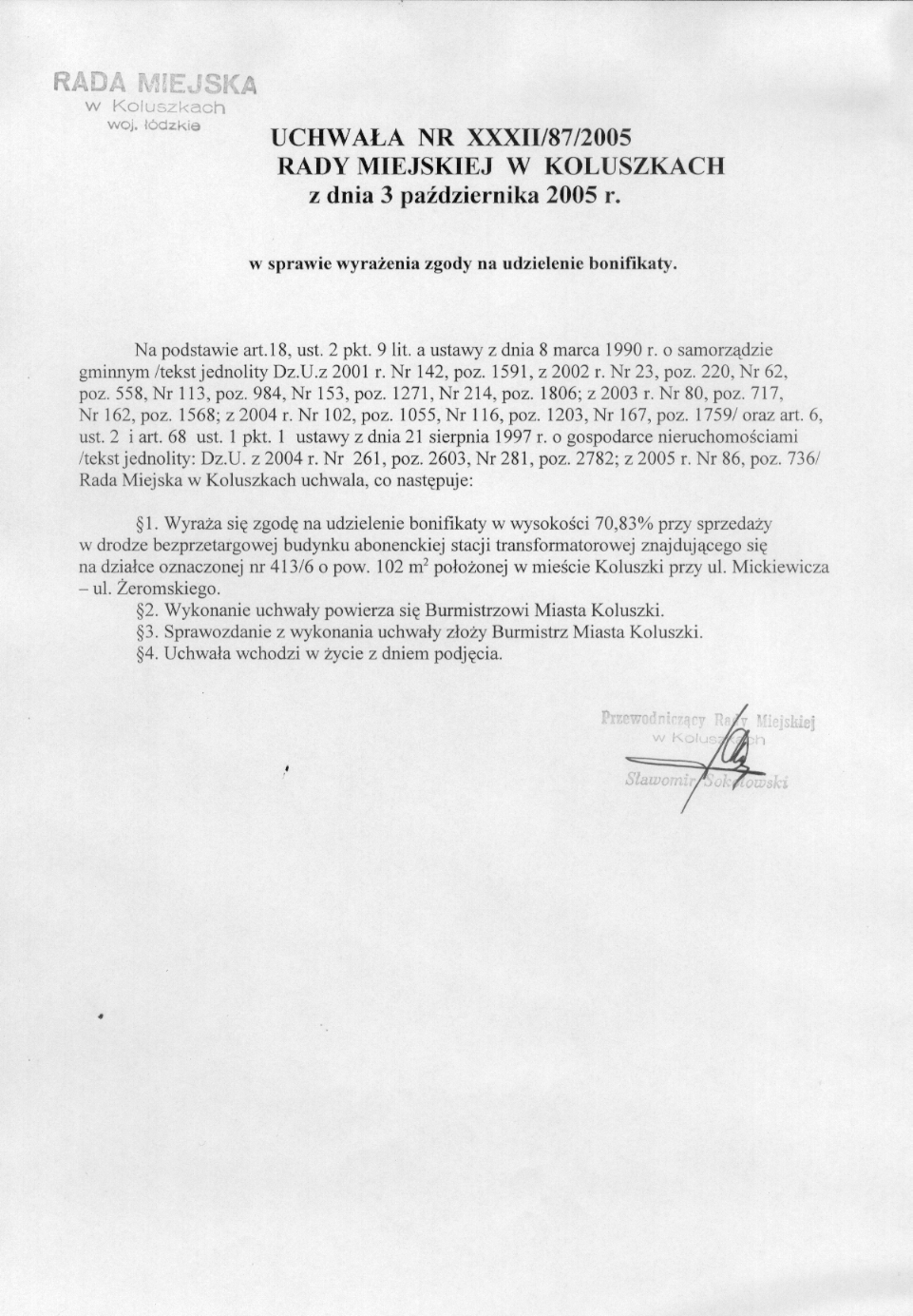 w sprawie wyra偶enia zgody na udzielenie bonifikaty