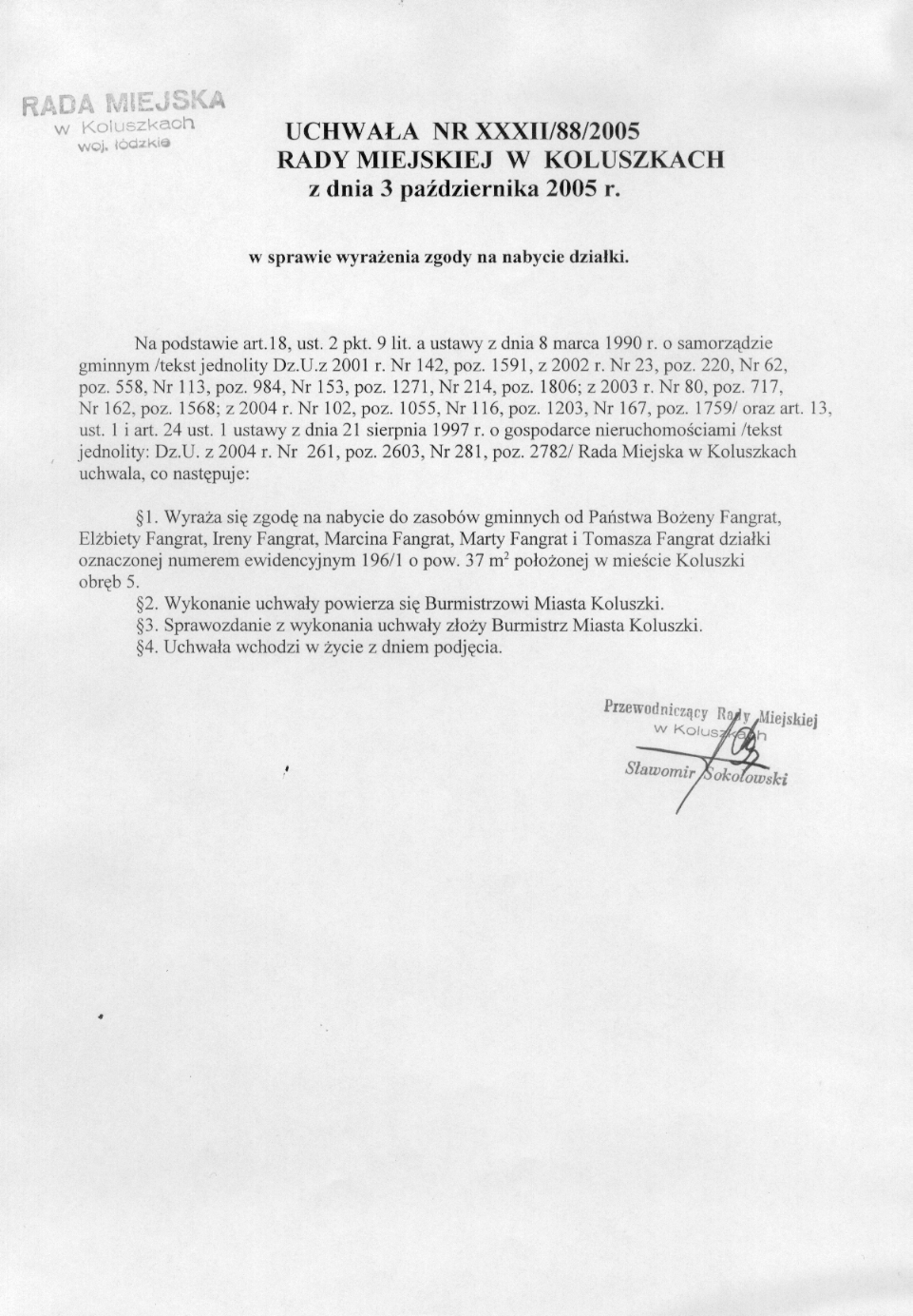 w sprawie wyra偶enia zgody na nabycie dzia艂ki