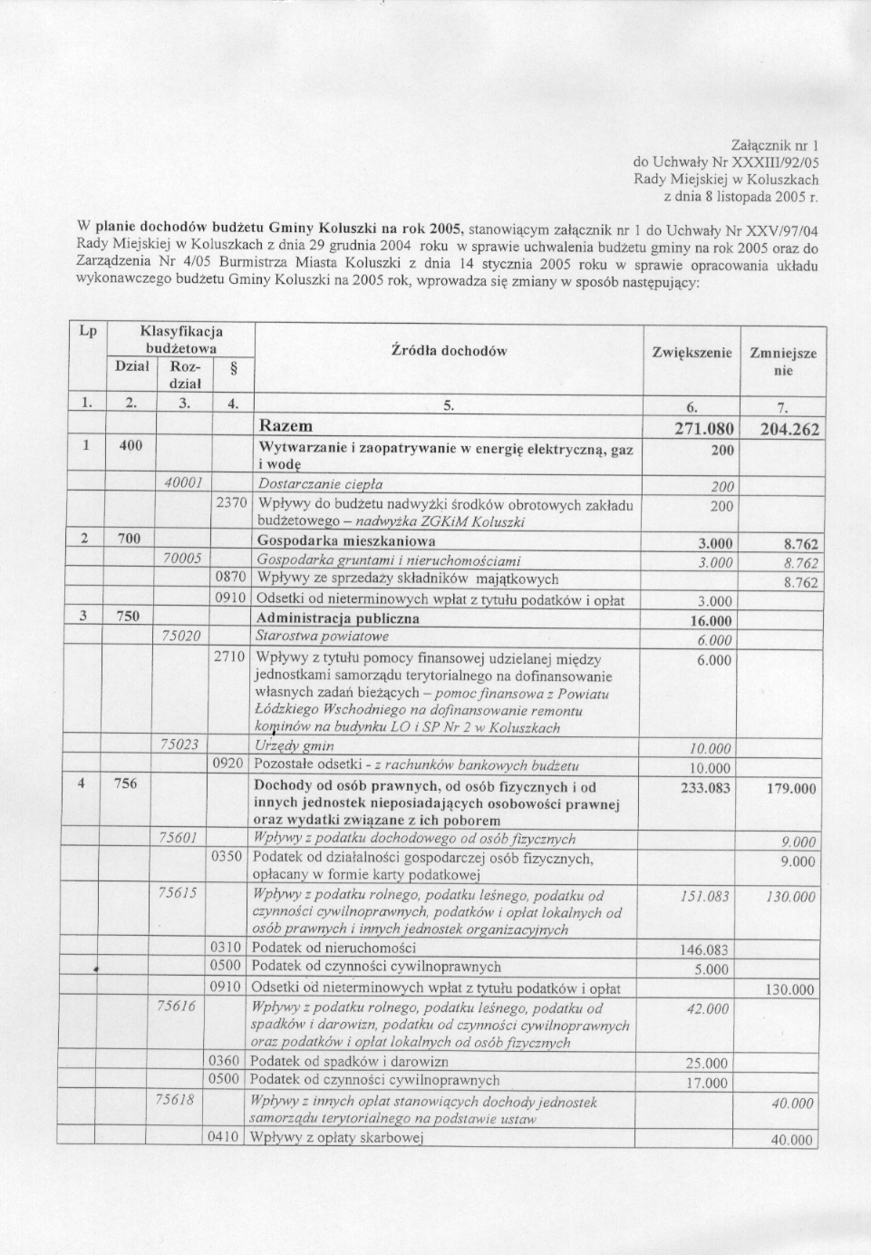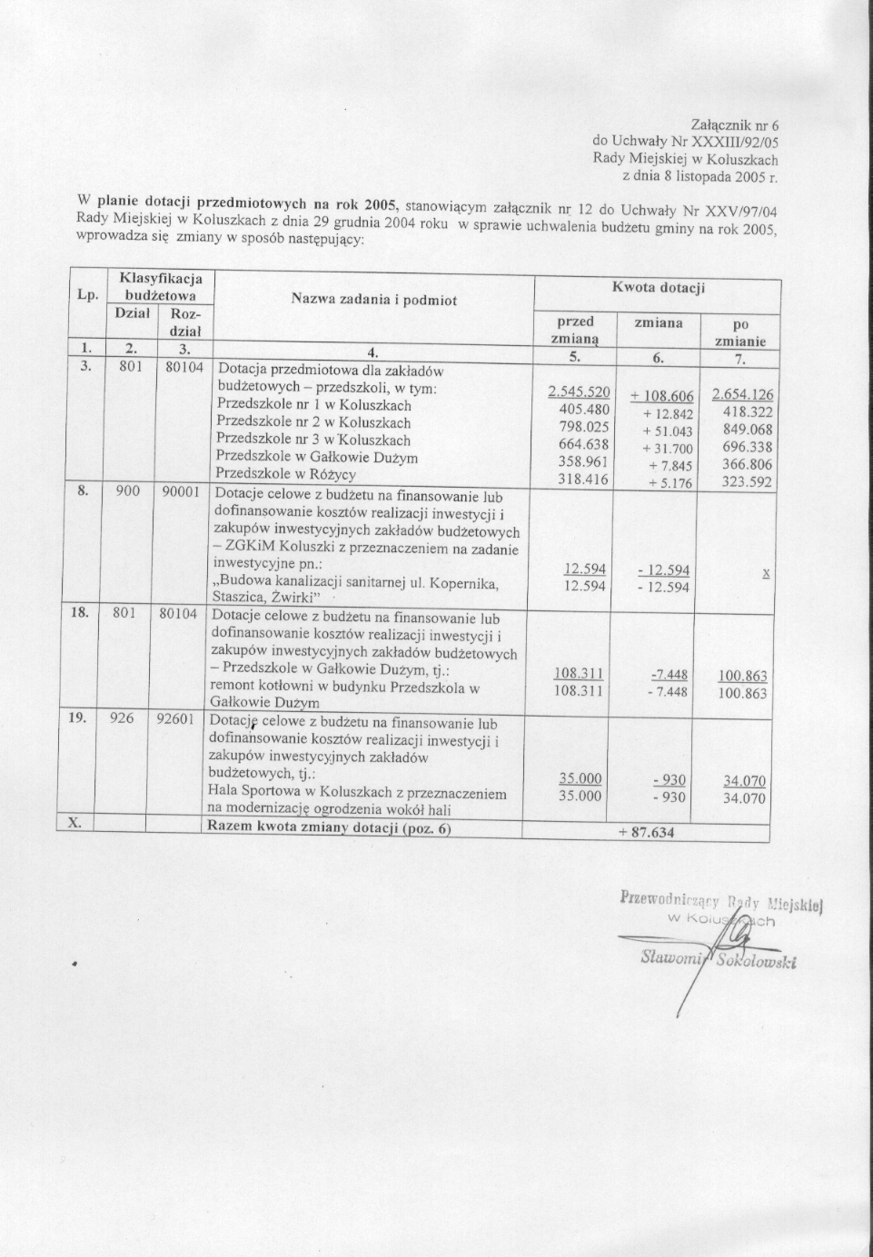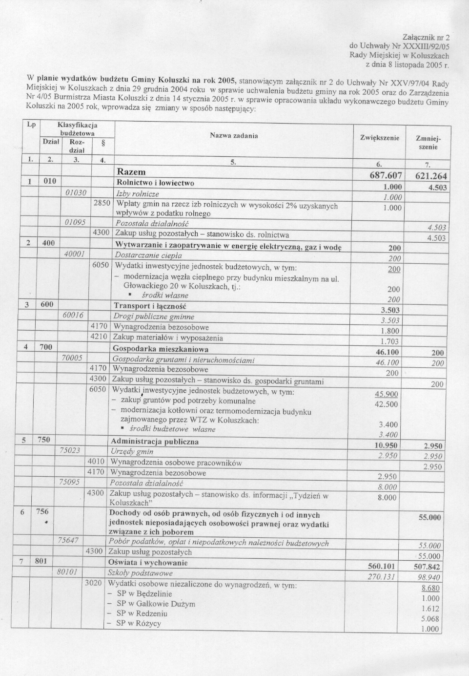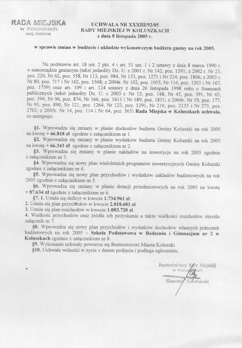 w sprawie zmian w bud偶ecie i uk艂adzie wykonawczym bud偶etu gminy na rok 2005