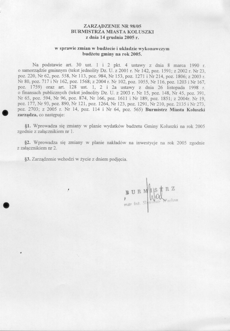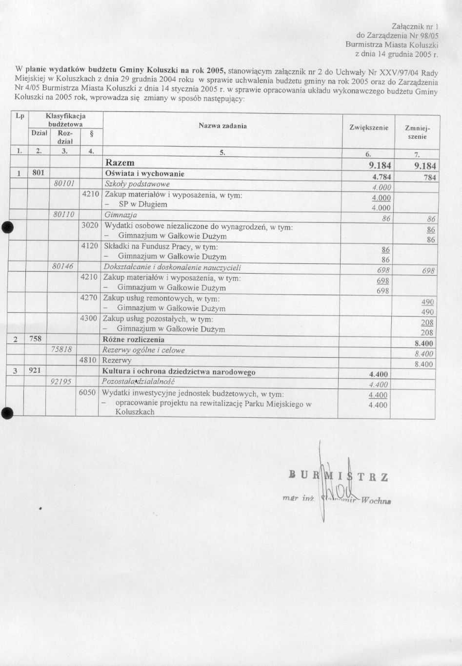w sprawie zmian w bud偶ecie i uk艂adzie wykonawczym bud偶etu gminy na rok 2005.
