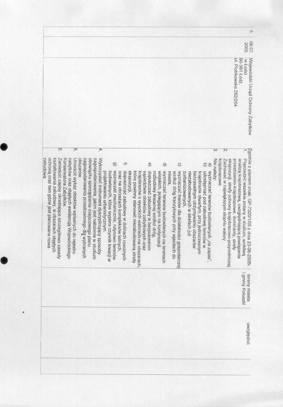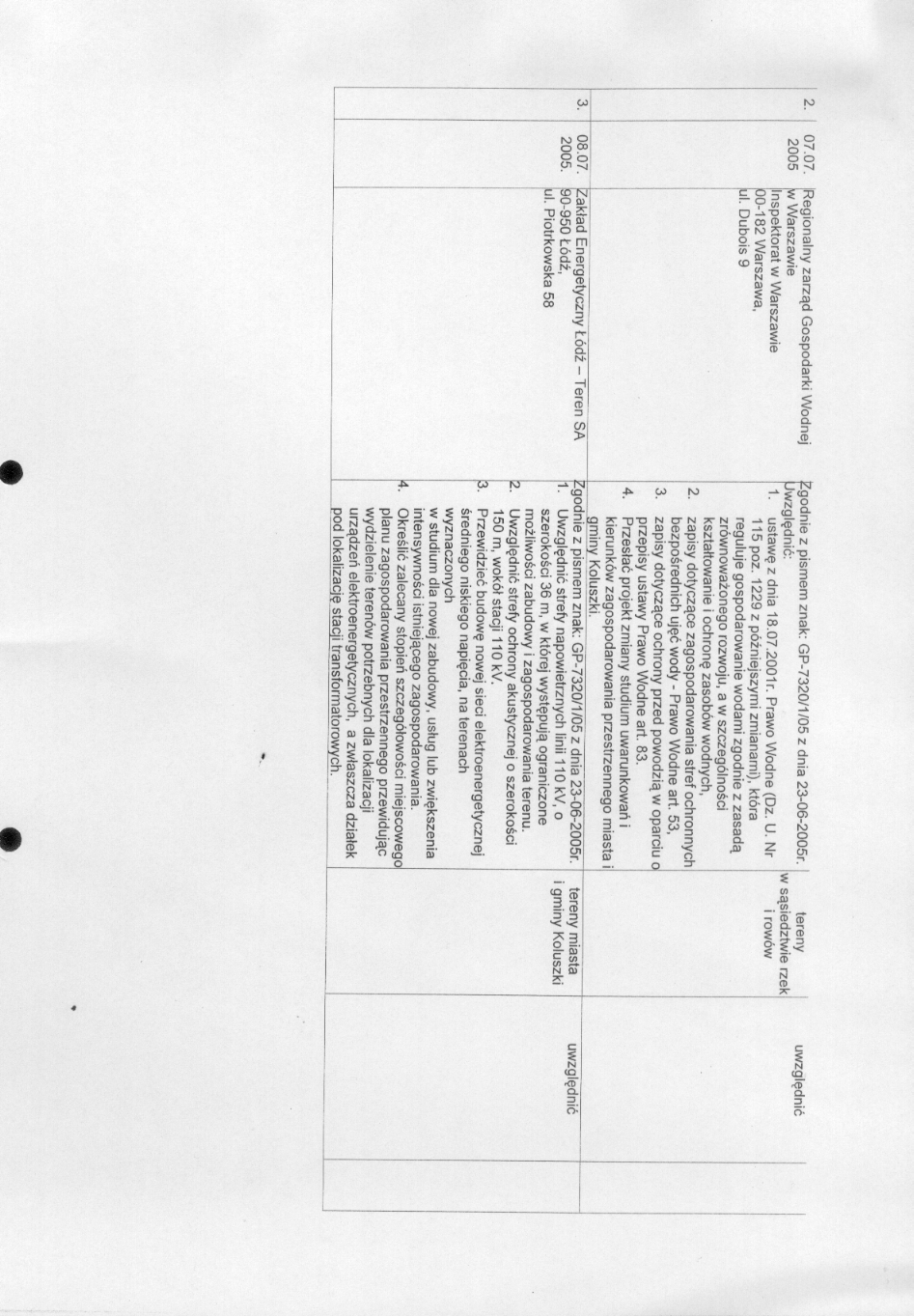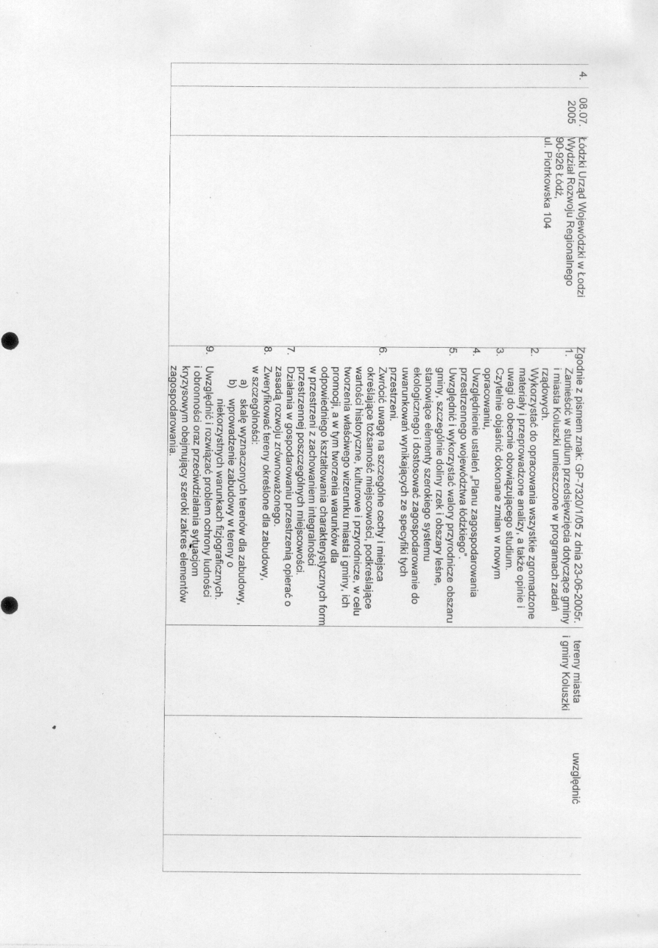 w sprawie rozpatrzenia wniosk贸w do " Zmiany Stadium uwarunkowa艅 i kierunk贸w zagospodarowania przestrzennego miasta i gminy Koluszki'.