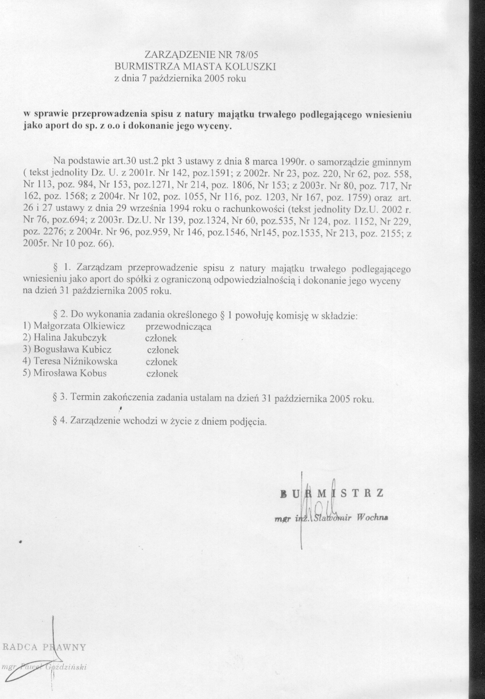 w sprawie przeprowadzenia spisu z natury maj膮tku trwa艂ego podlegaj膮cego wniesieniu jako aport do sp. z o.o i dokonanie jego wyceny.