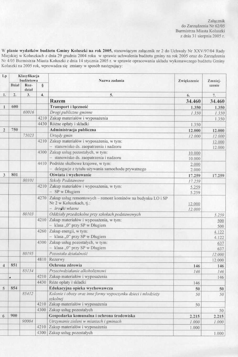 w sprawie zmian w bud偶ecie i uk艂adzie wykonawczym bud偶etu gminy na rok 2005.