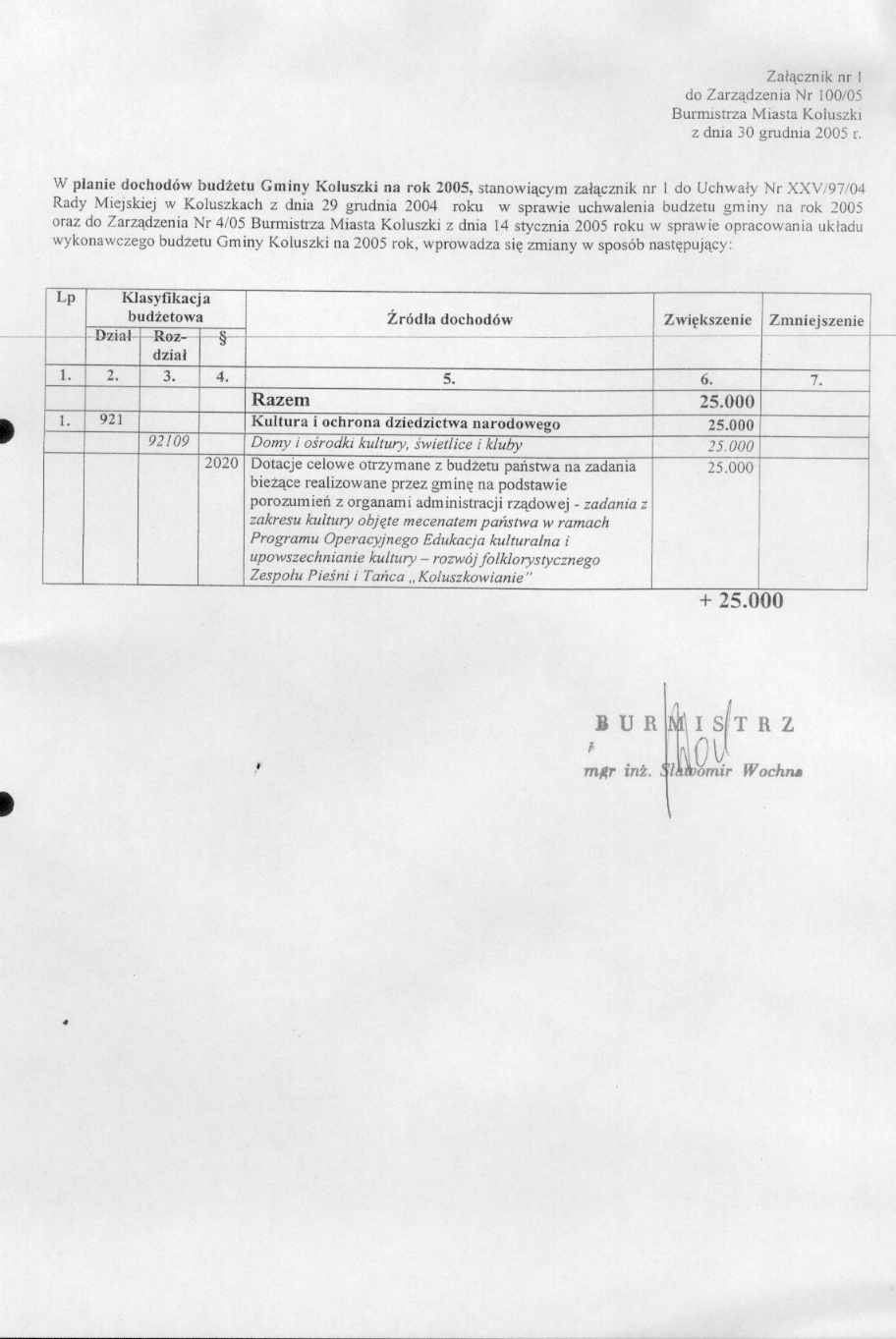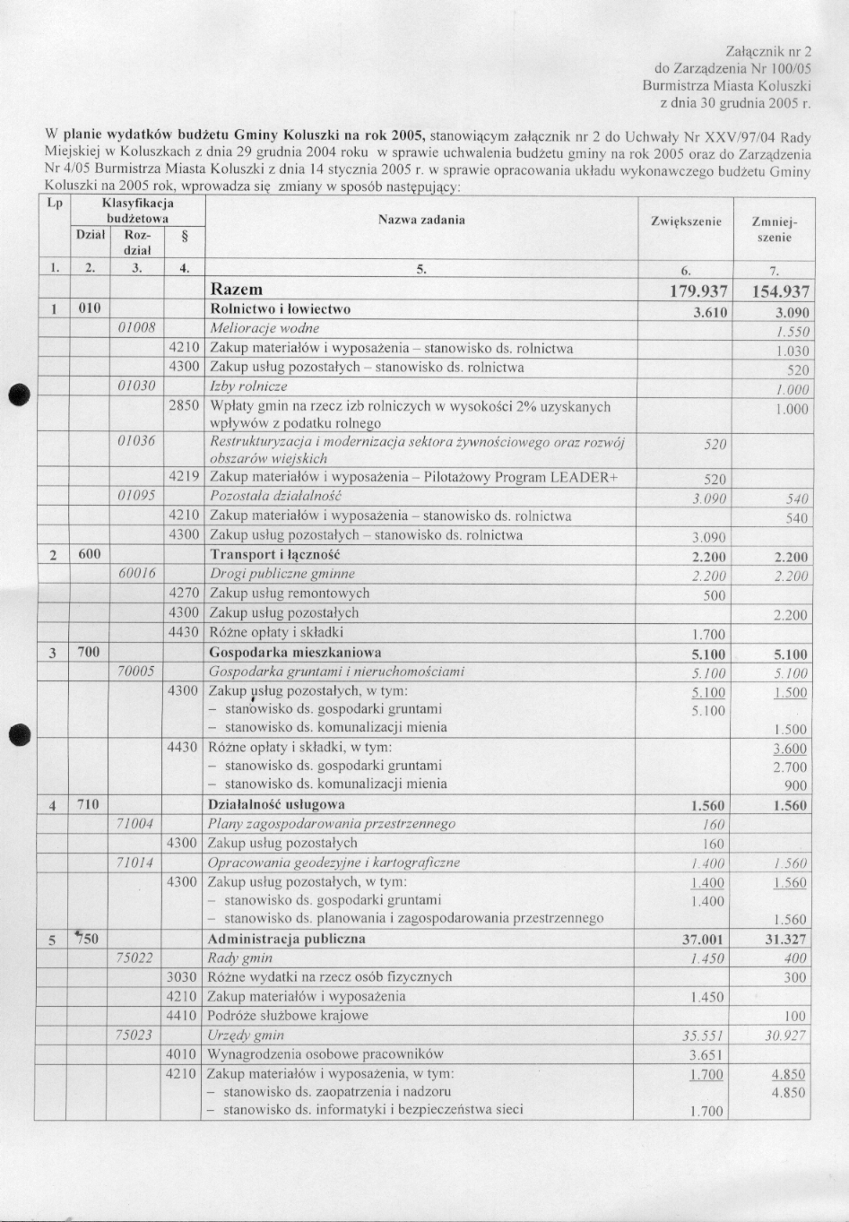 w sprawie zmian w budżecie i układzie wykonawczym budżetu gminy na rok 2005.