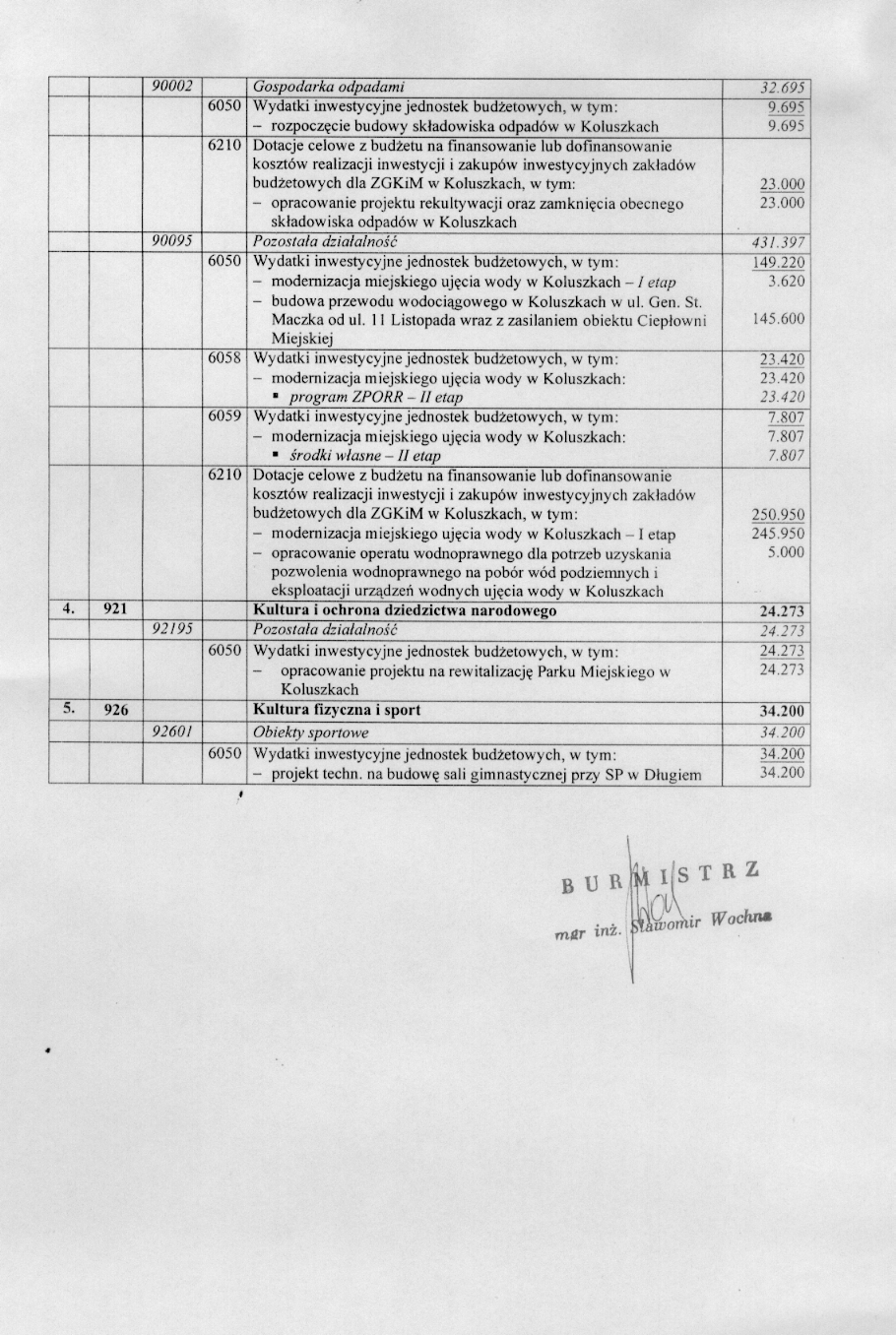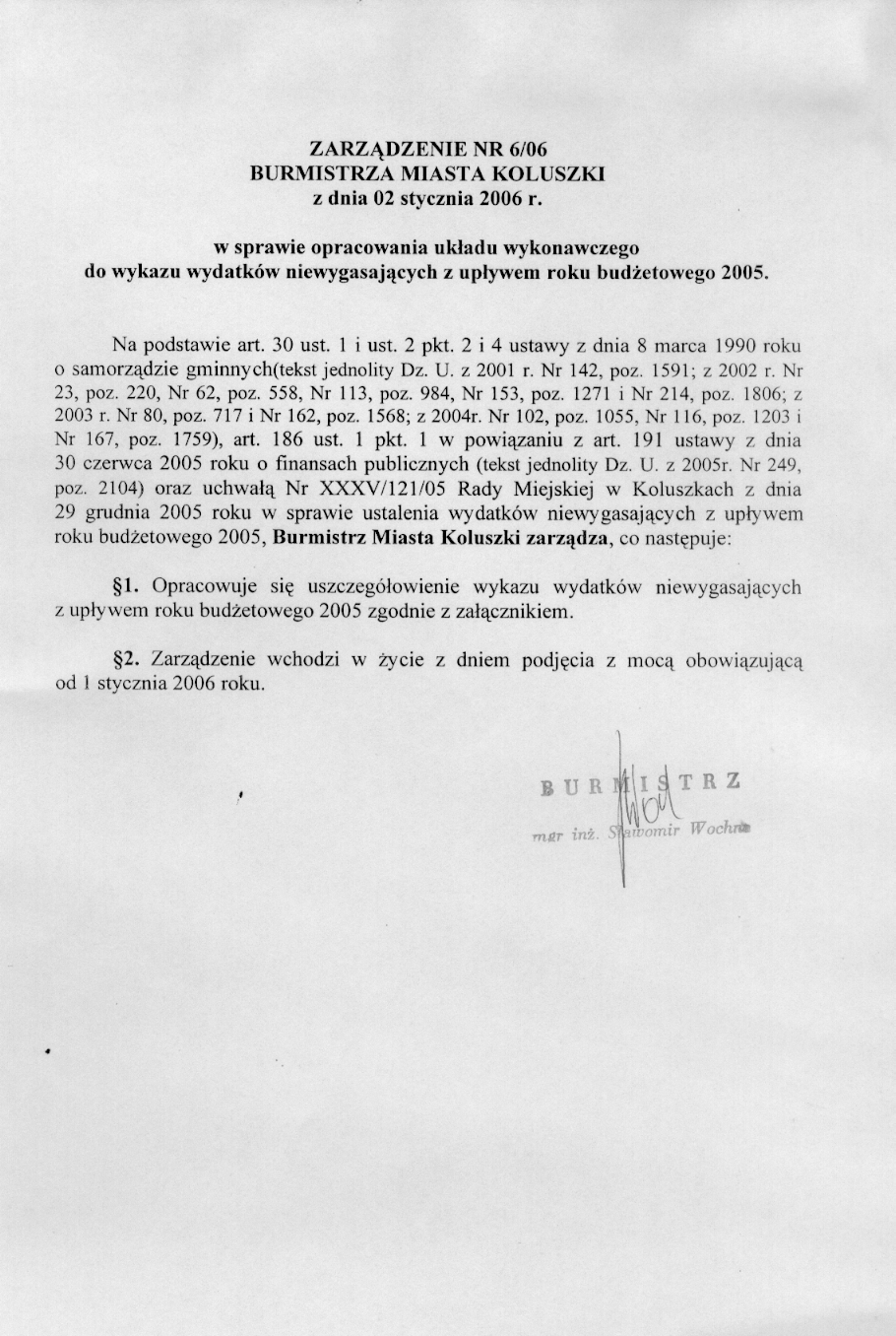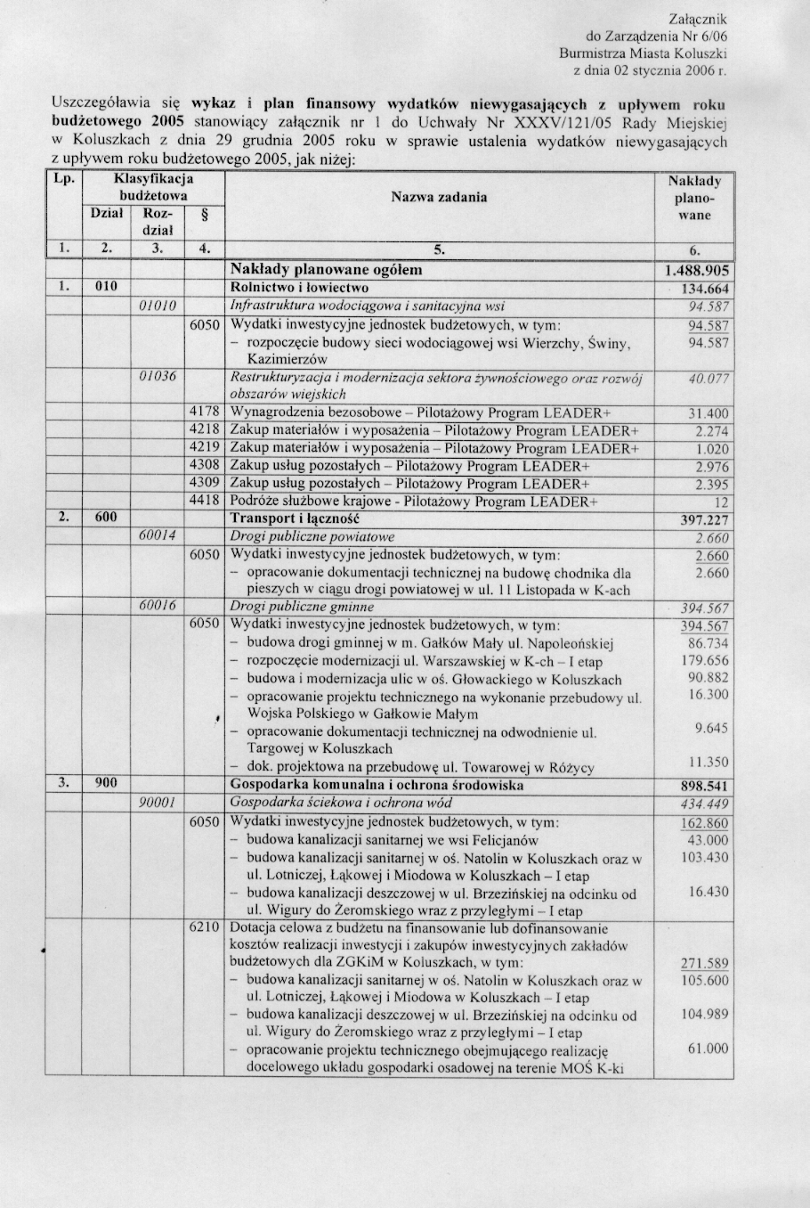 w sprawie opracowania ukladu wykonawczego do wykazu wydatk贸w niewygasaj膮cych z up艂ywem roku bud偶etowego 2005.