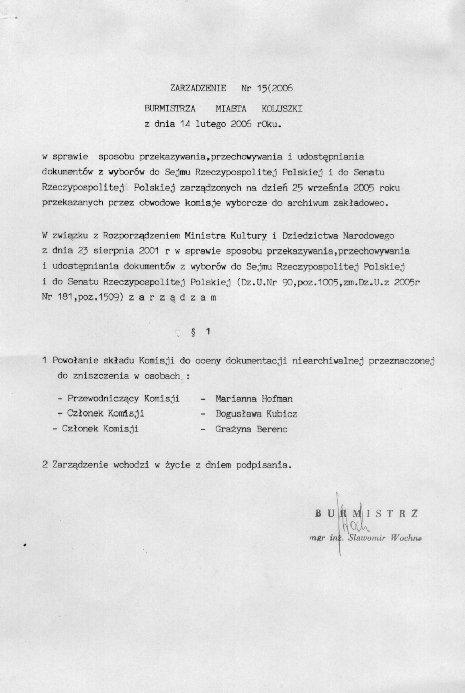 w sprawie sposobu przekazywania ,przechowywania i udostepniania dokument贸w z wybor贸w do Sejmu Rzeczypospolitej Polskiej i do Senatu Rzeczypospolitej Polskiej zarz膮dzonych na dzie艅 25 wrze艣nia 2005 roku przekazanych przez obwodowe komisje wyborcze do archi