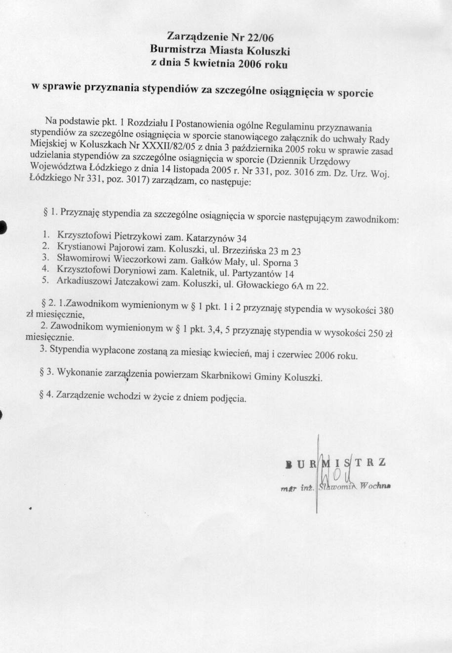 w sprawie przyznania stypendi贸w za szczeg贸lne osi膮gni臋cia w sporcie.