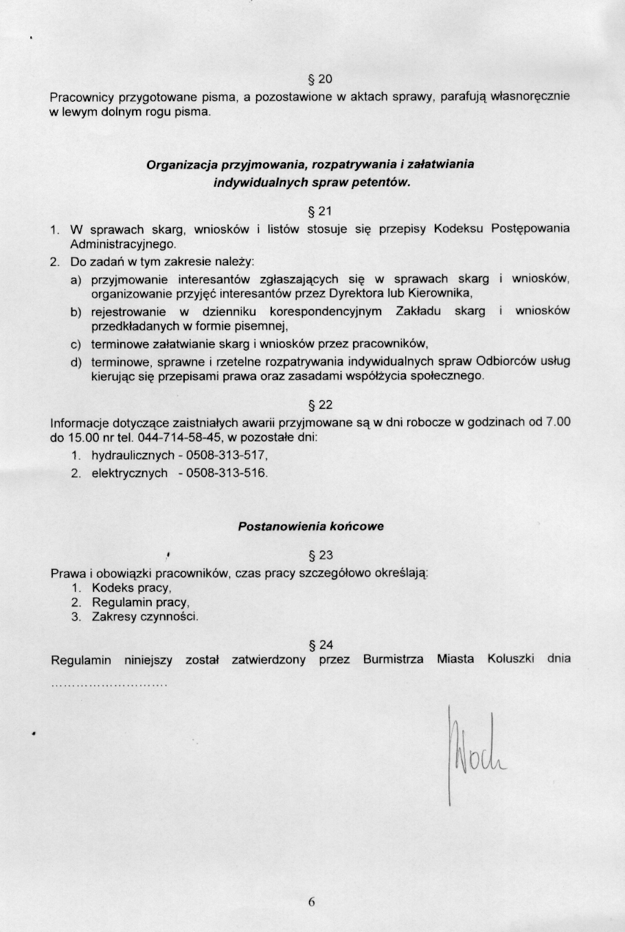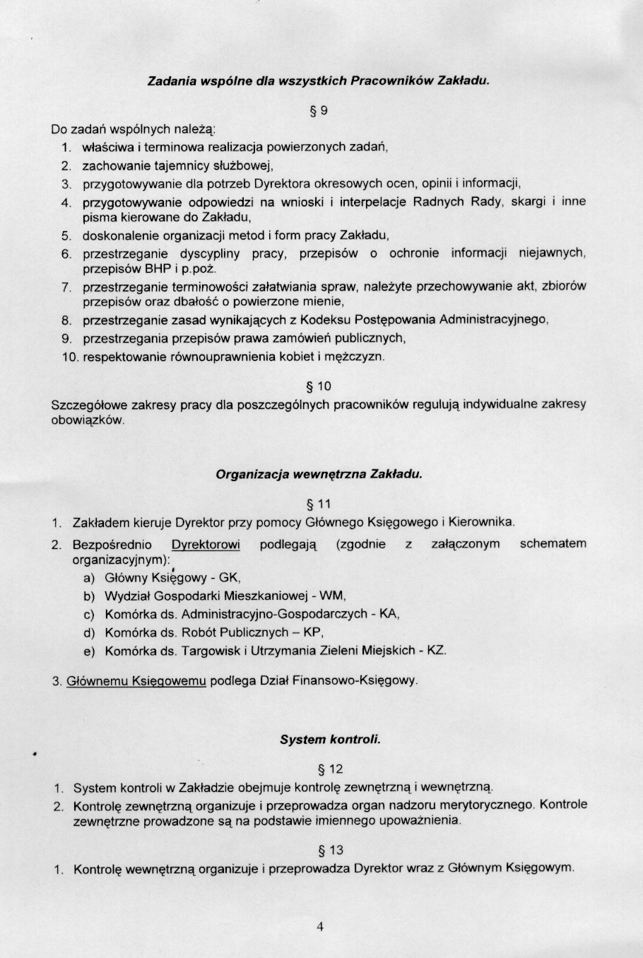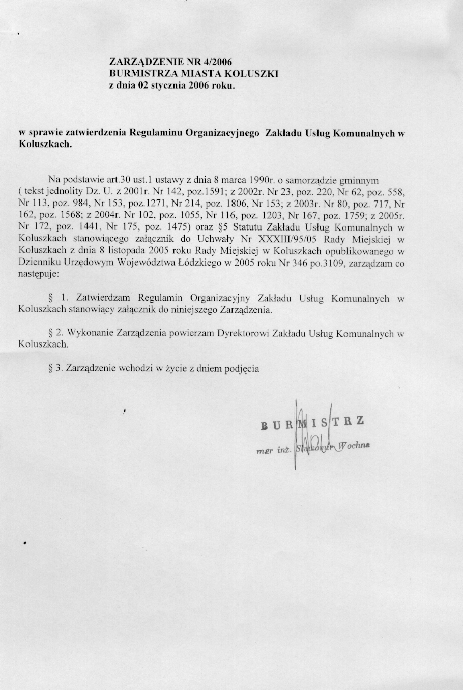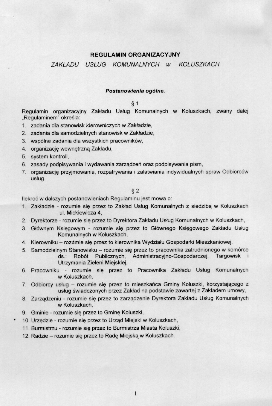 w sprawie zatwierdzenia regulaminu Organizacyjnego Zak艂adu Us艂ug Komunalnych