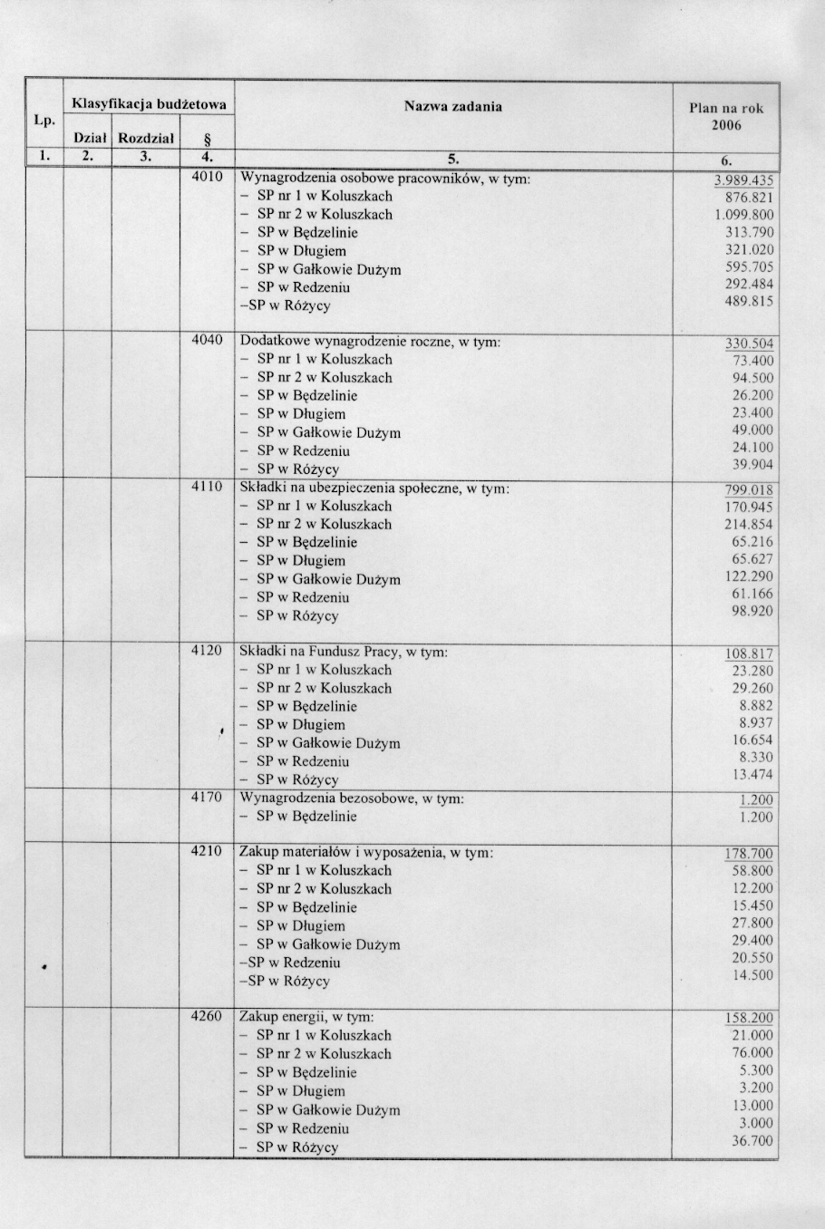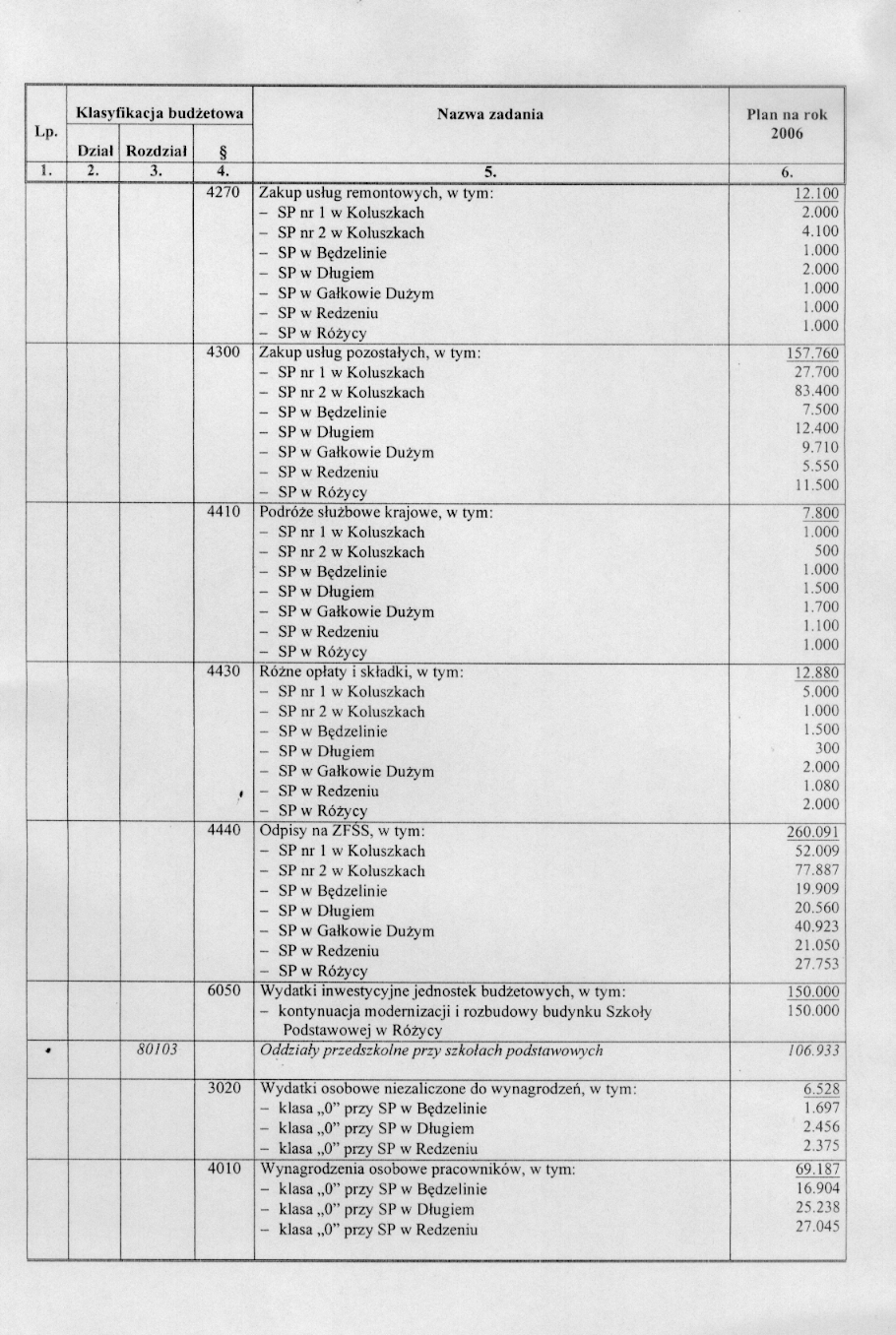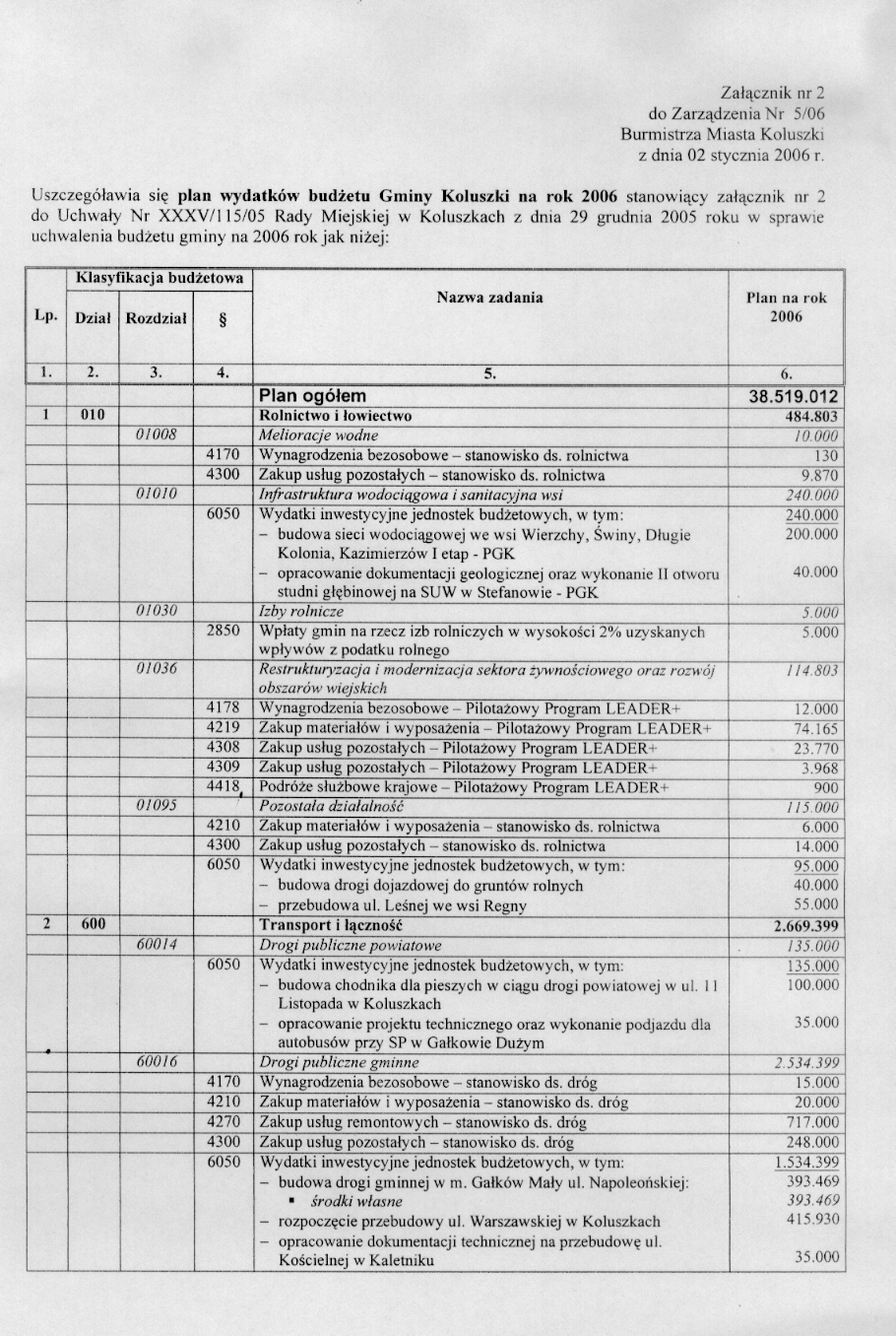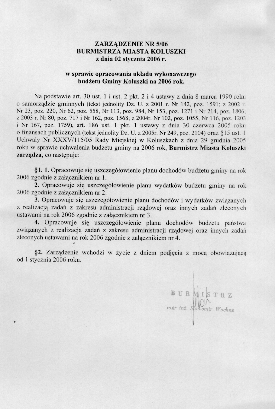 w sprawie opracowania układu wykonawczego budżetu Gminy Koluszki na 2006 r.