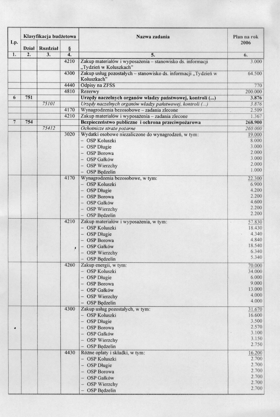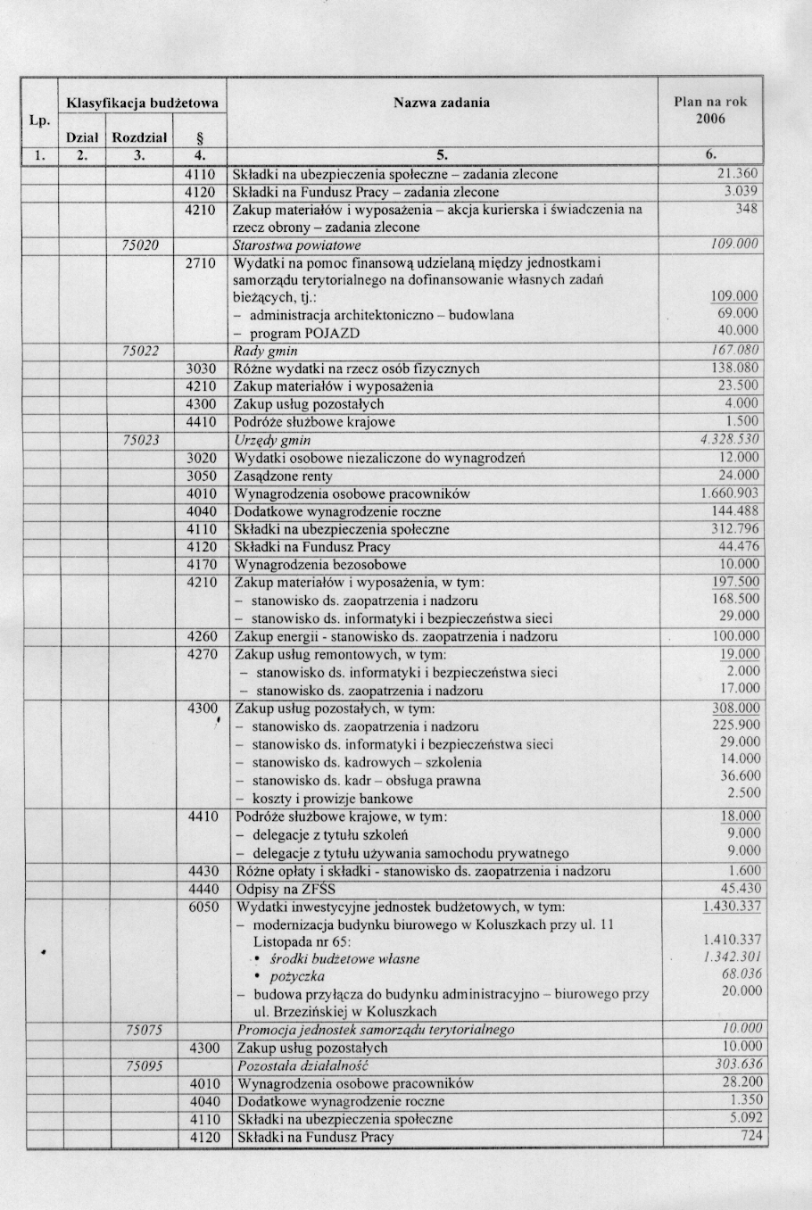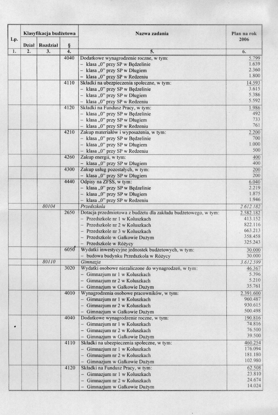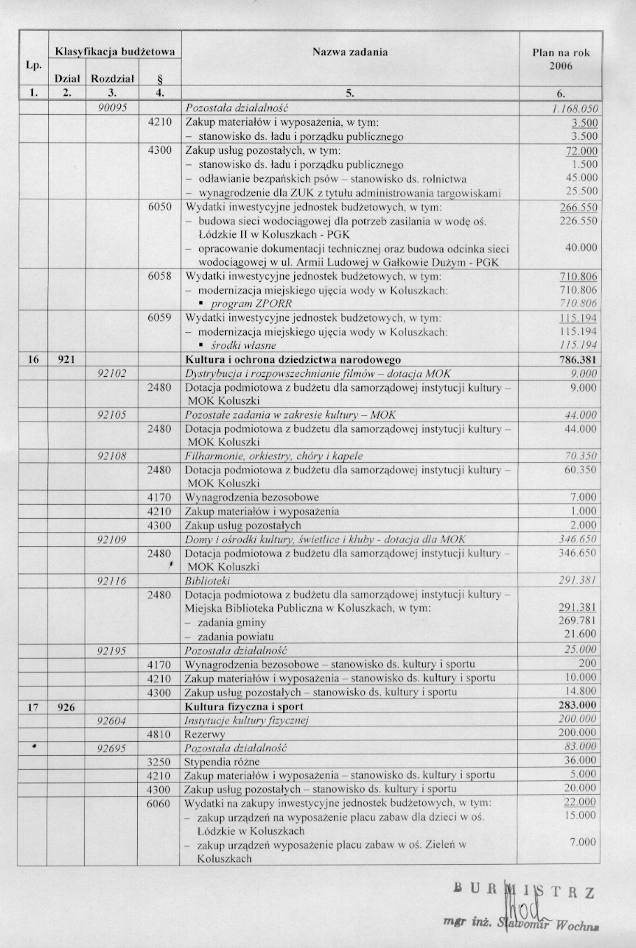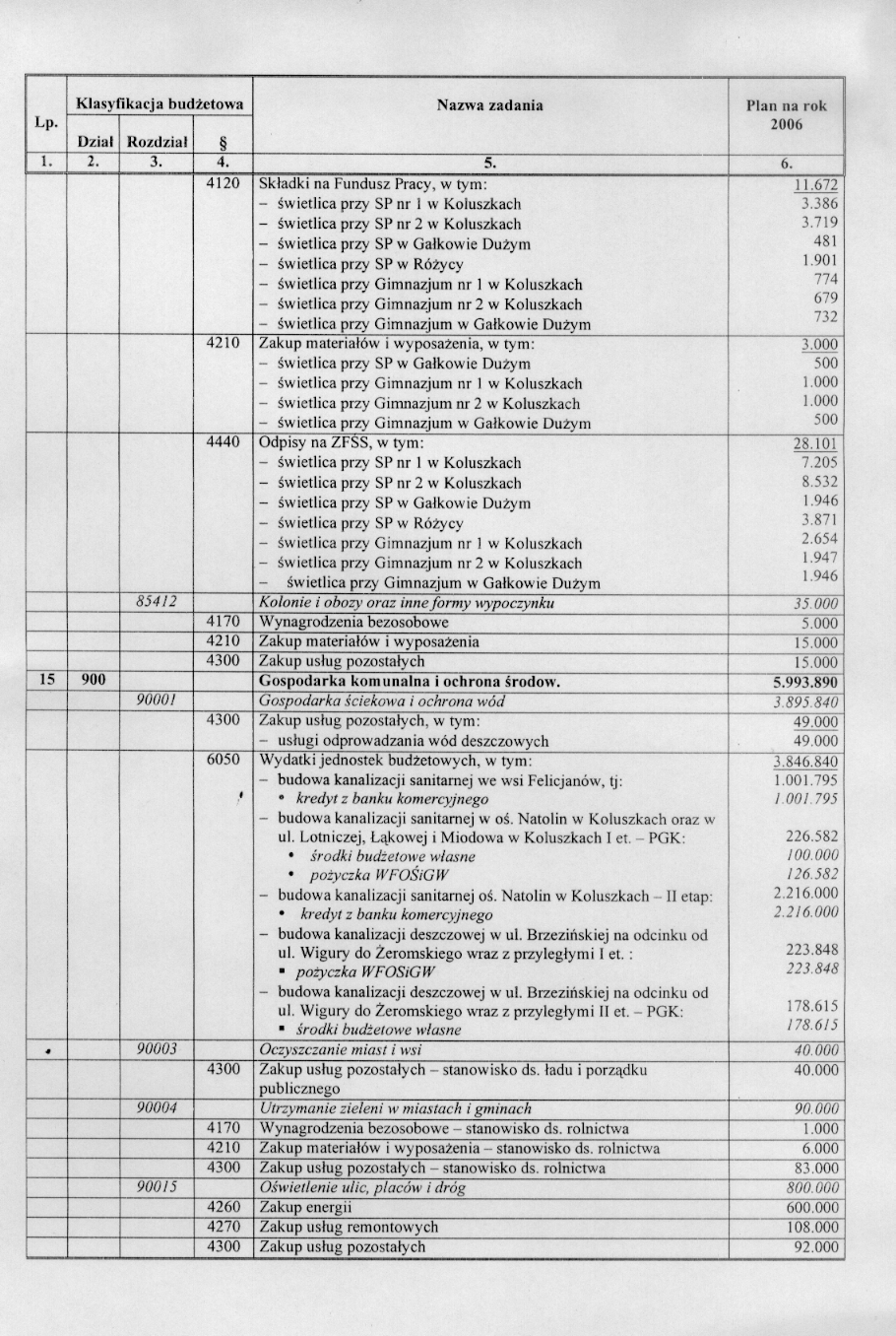w sprawie opracowania układu wykonawczego budżetu Gminy Koluszki na 2006 r.