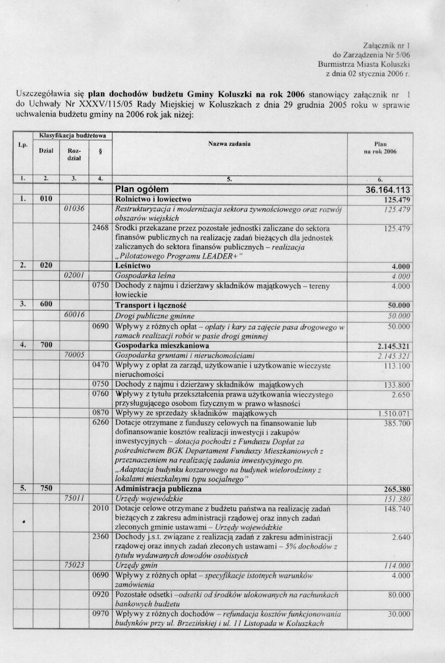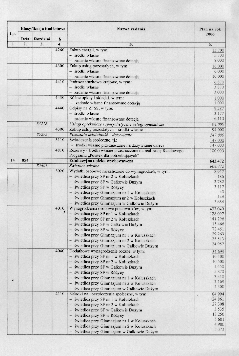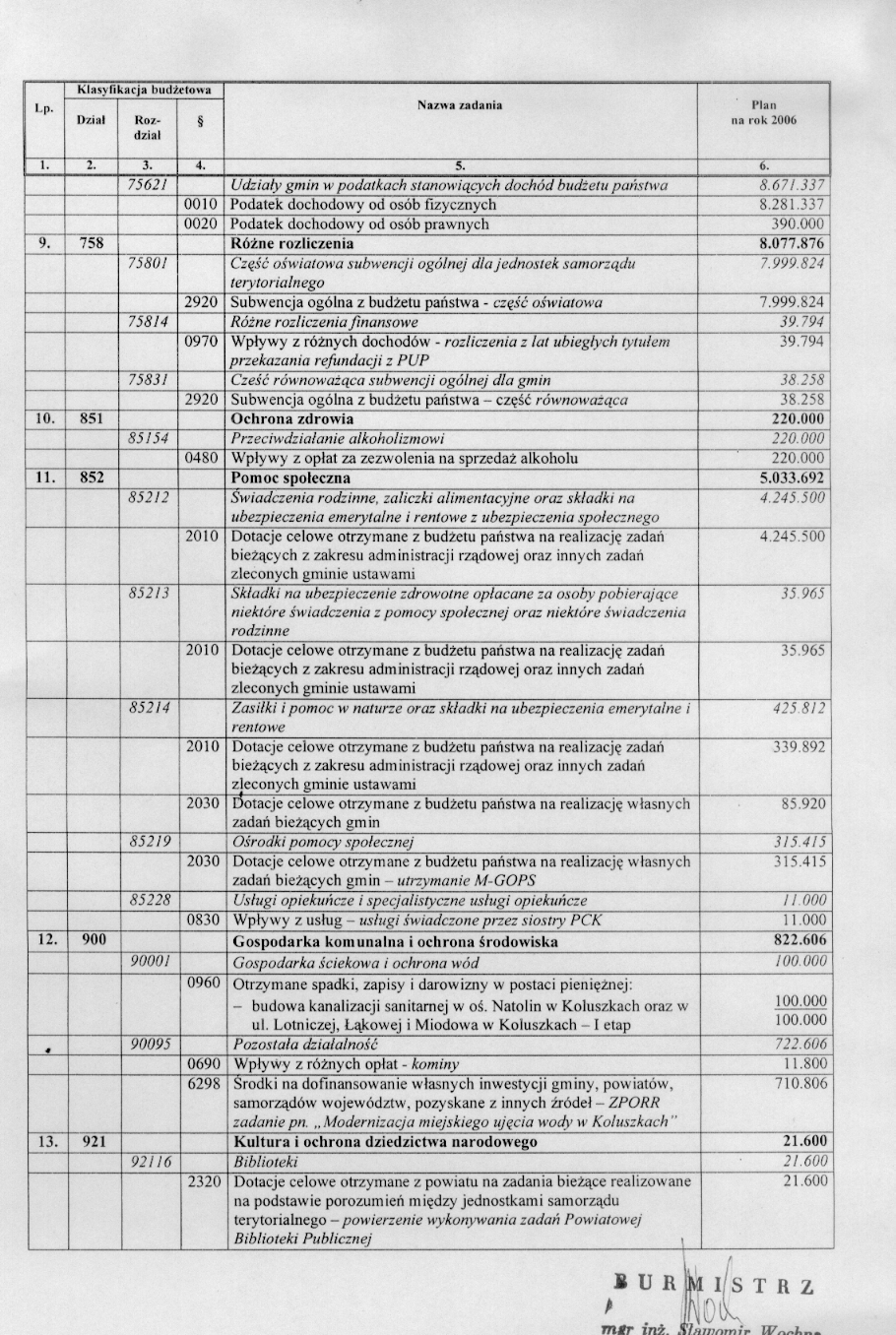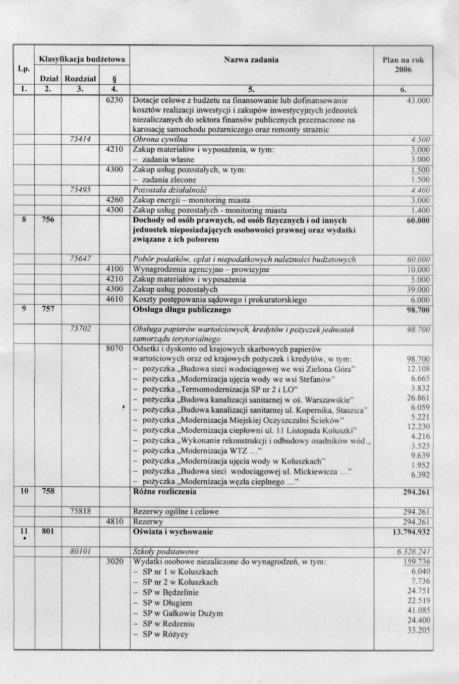 w sprawie opracowania układu wykonawczego budżetu Gminy Koluszki na 2006 r.