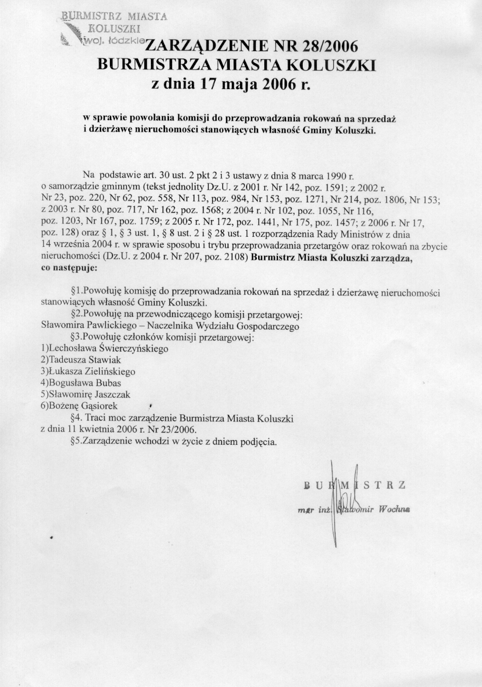 w sprawie powo艂ania komisji do przeprowadzenia rokowa艅 na sprzeda偶 i dzier偶aw臋 nieruchomo艣ci stanowi膮cych w艂asno艣膰 Gminy Koluszki.