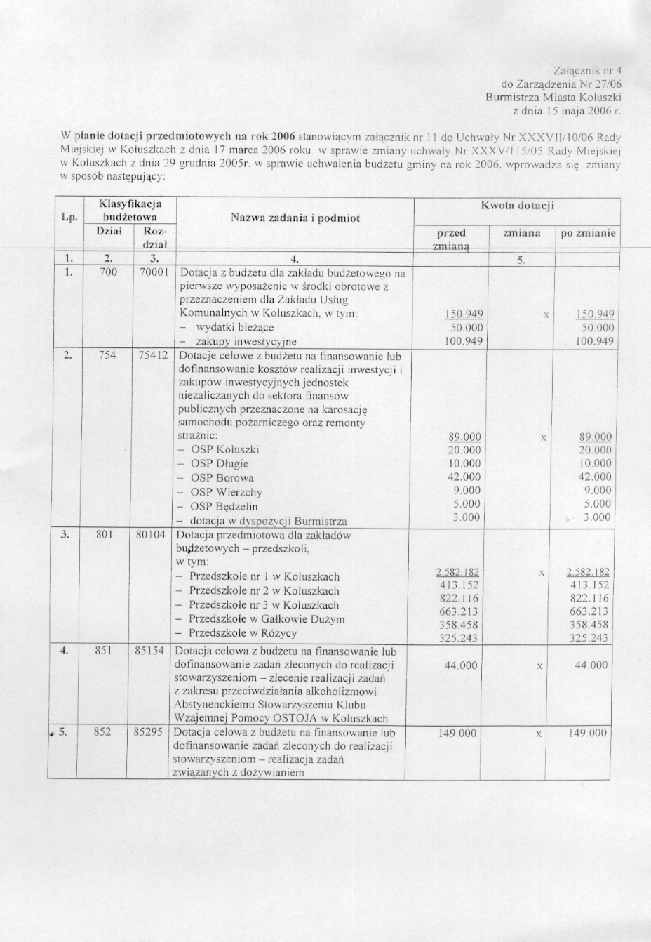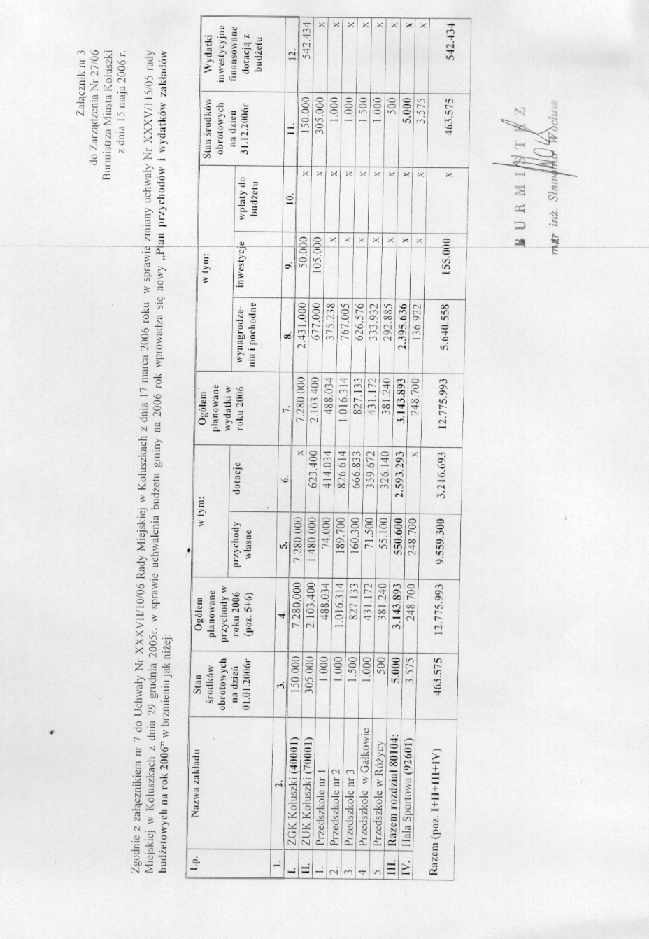 w sprawie zmian w budżecie i układzie wykonawczym budżetu gminy na rok 2006.