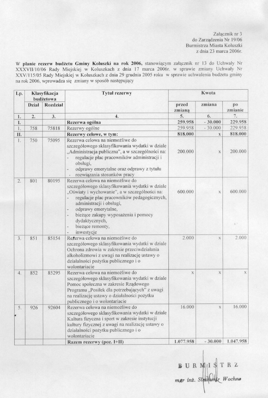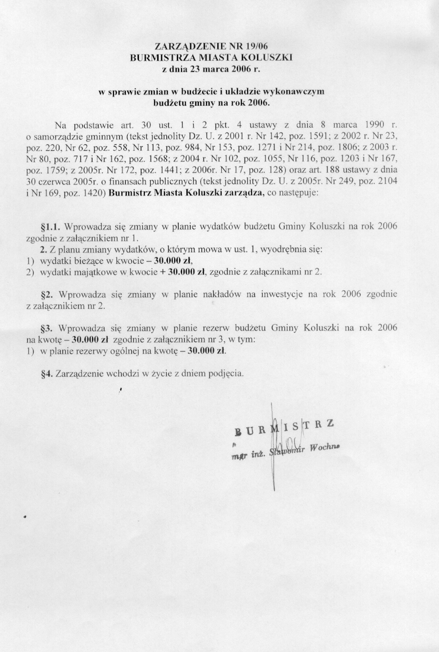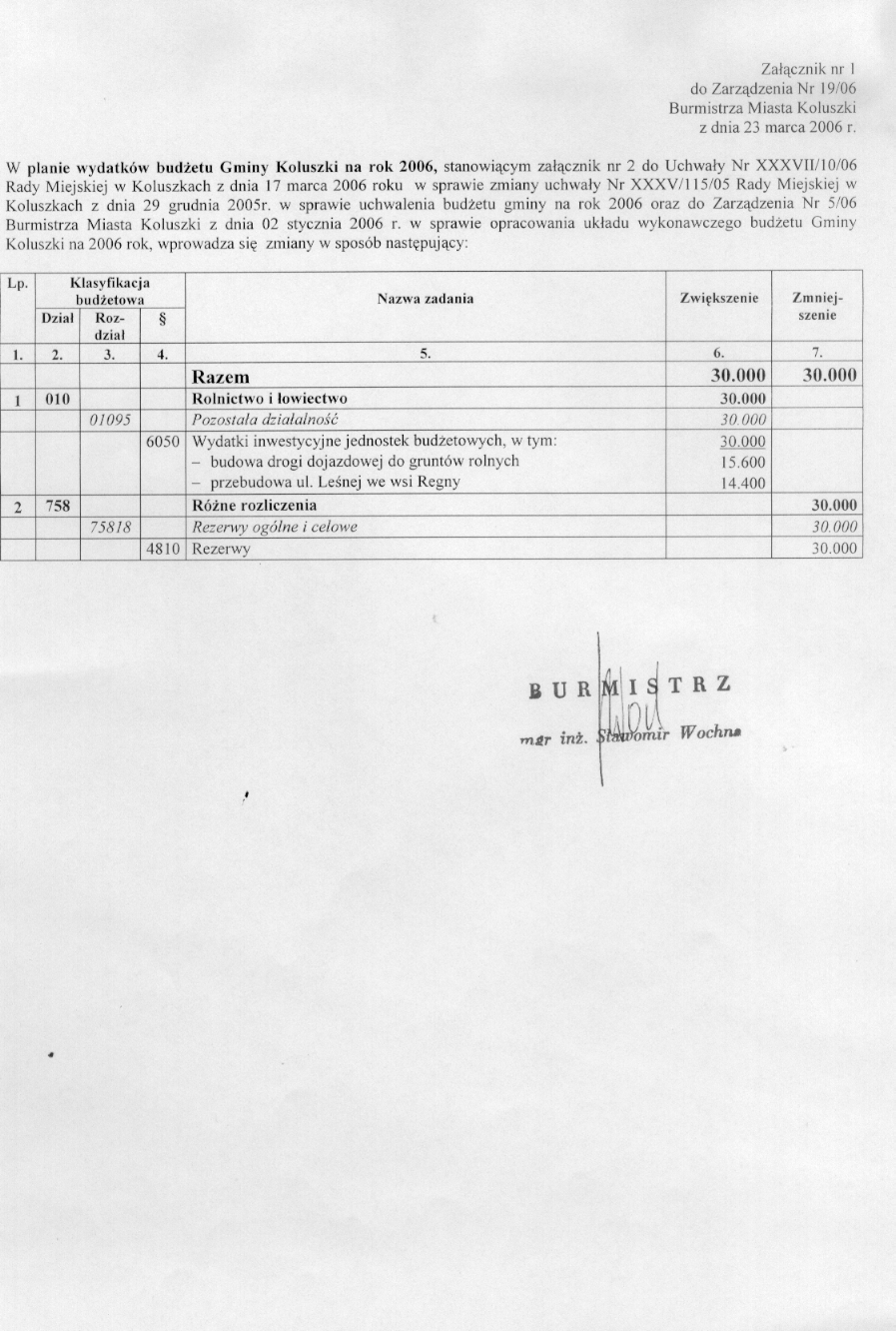 w sprawie zmian w bud偶ecie i uk艂adzie wykonawczym bud偶etu gminy na rok 2006.