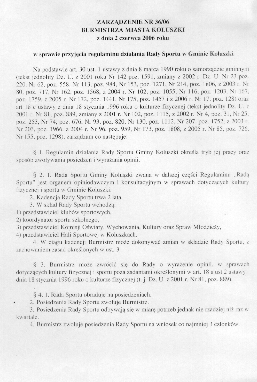w sprawie regulaminu dzia艂ania Rady Sportu w Gminie Koluszki.