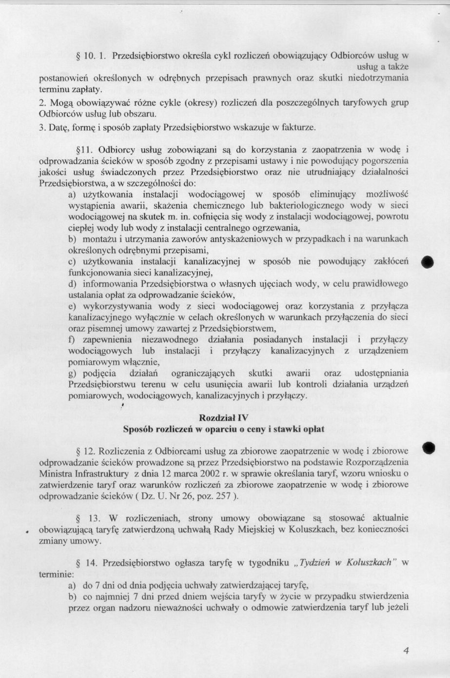 w sprawie uchwalenia regulaminu dostarczania wody i odprowadzania 艣ciek贸w na terenie Gminy Koluszki.