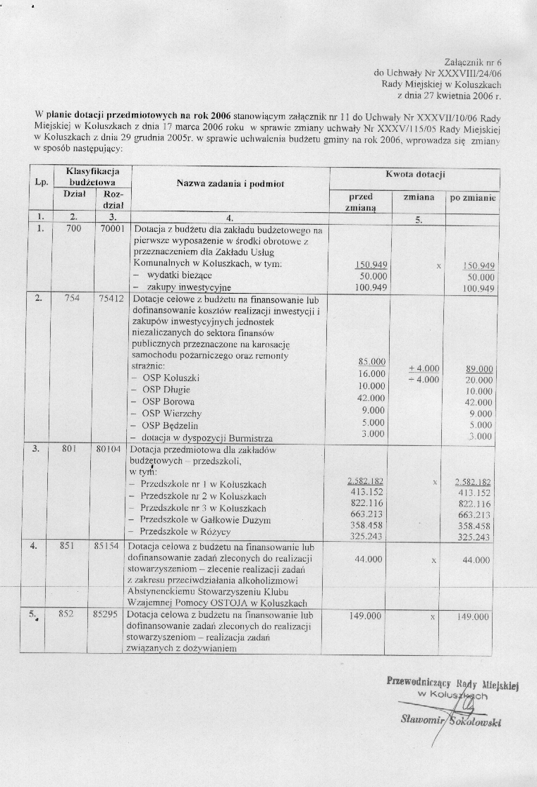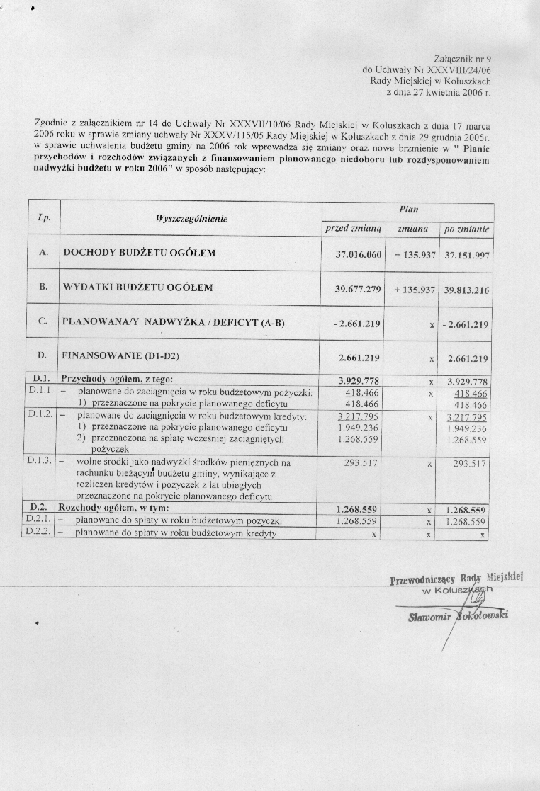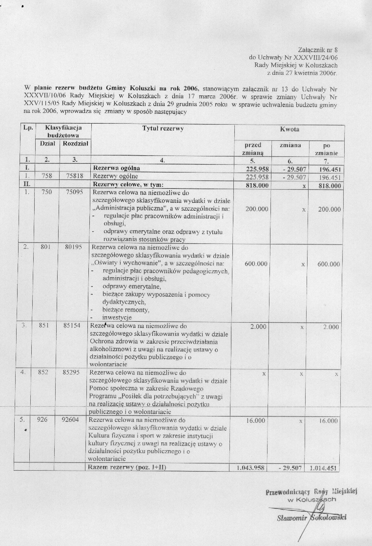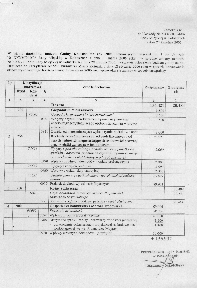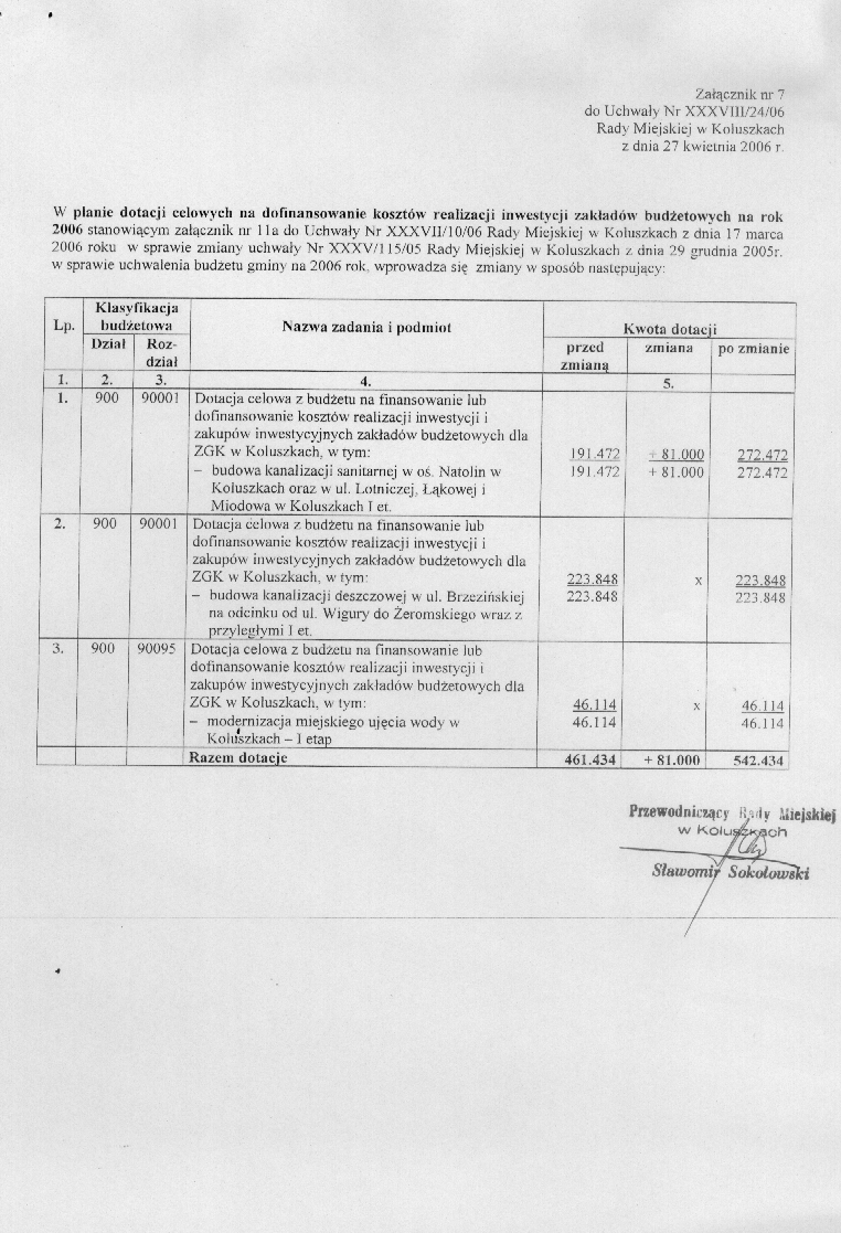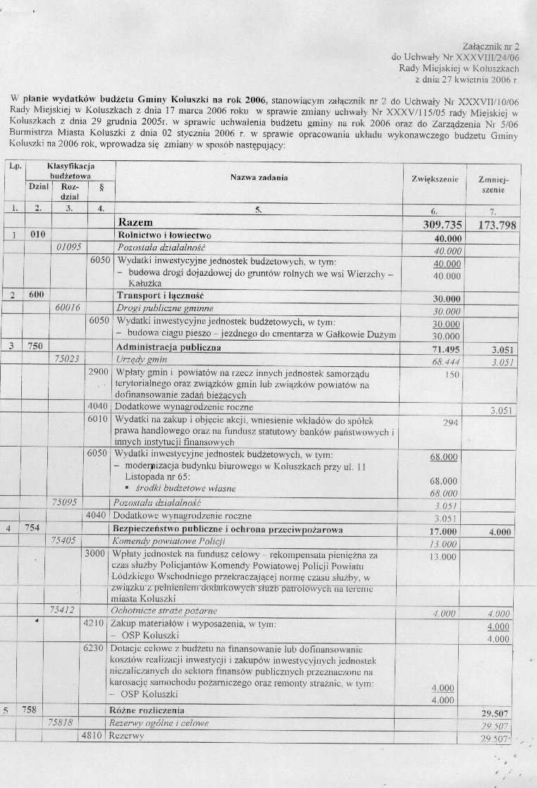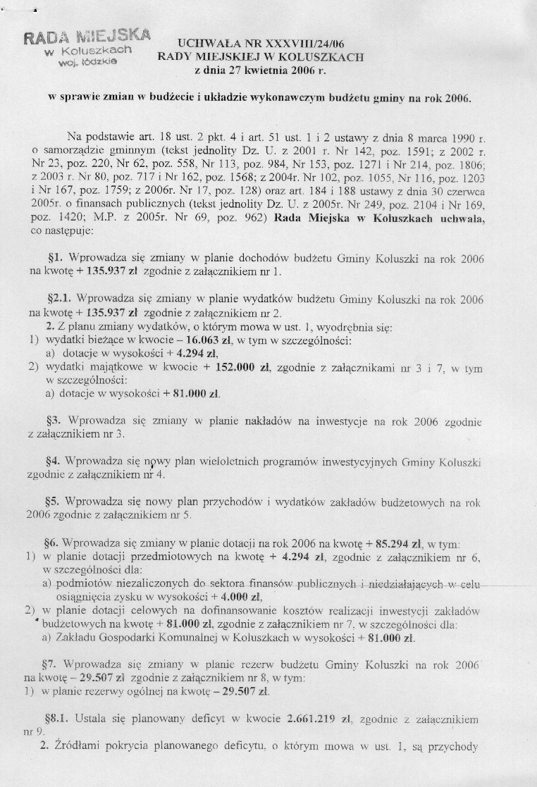 w sprawie zmian w bud偶ecie i uk艂adzie wykonawczym bud偶etu gminy na rok 2006.
