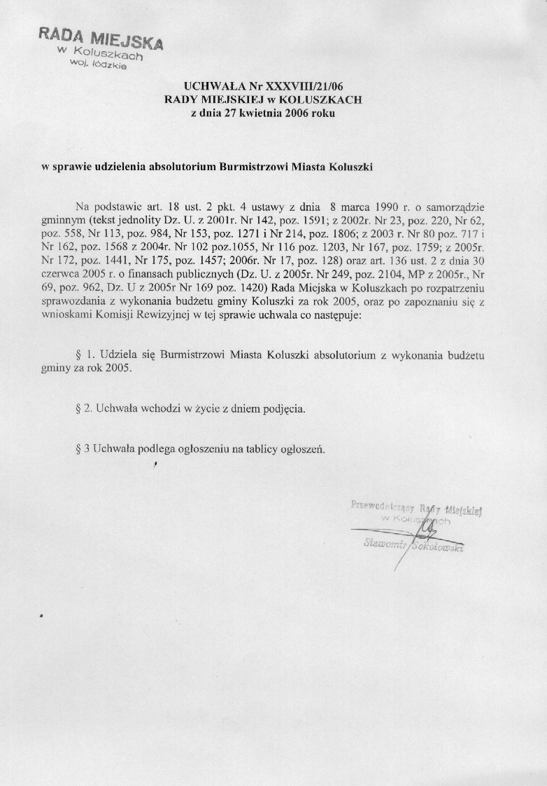w sprawie udzielenia absolutorium Burmistrzowi Miasta Koluszki
