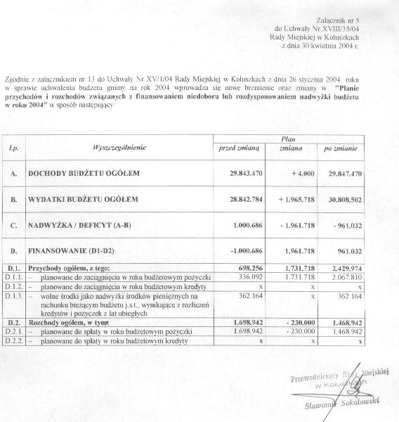 Uchwa艂a w sprawie zmian w bud偶ecie i uk艂adzie wykonawczym bud偶etu gminy na rok 2004