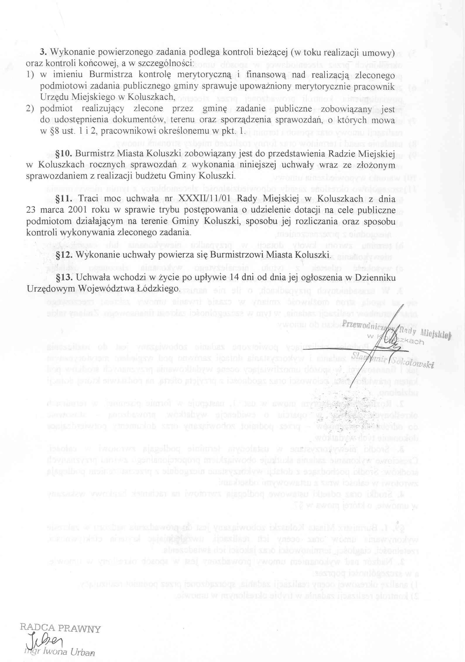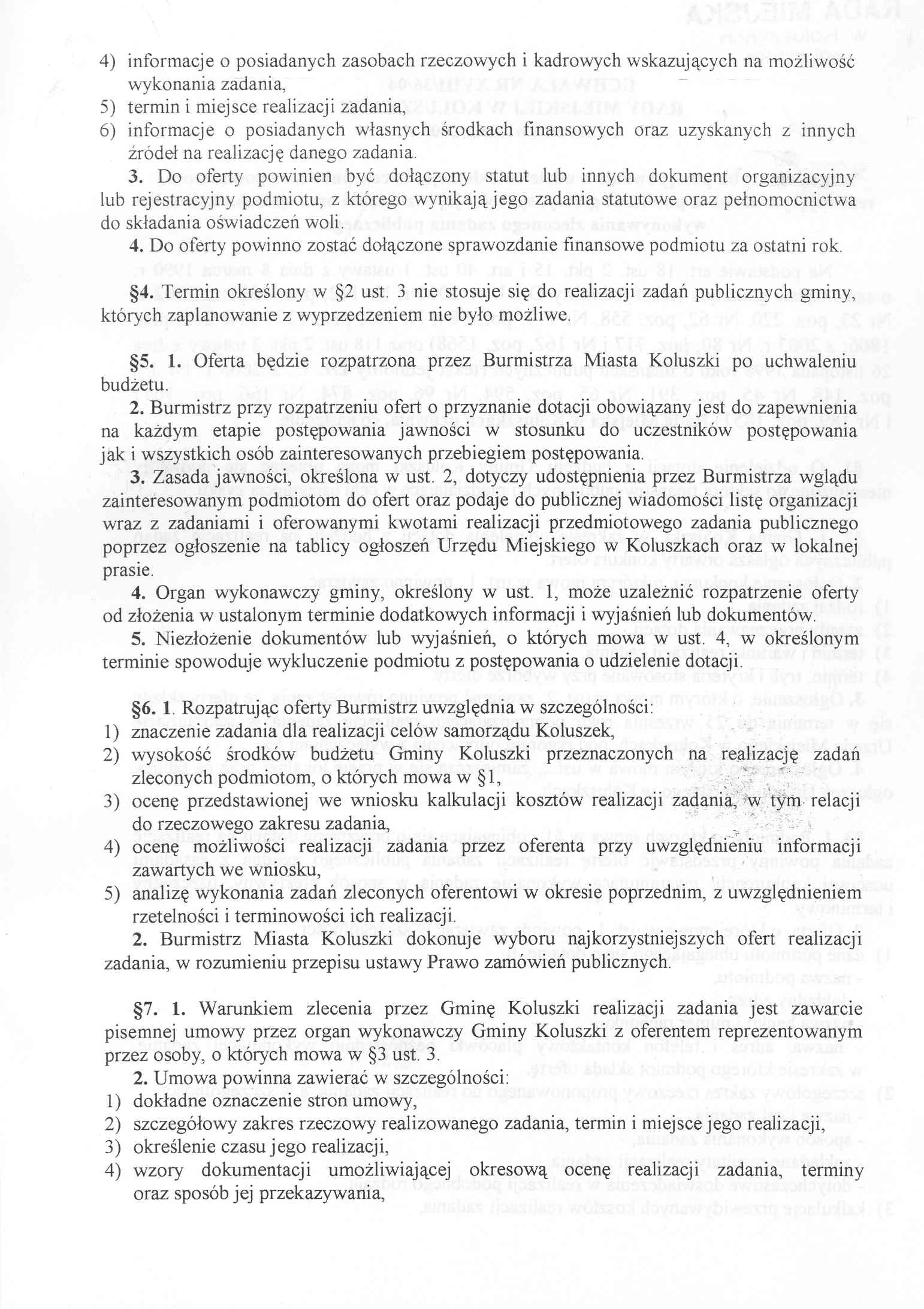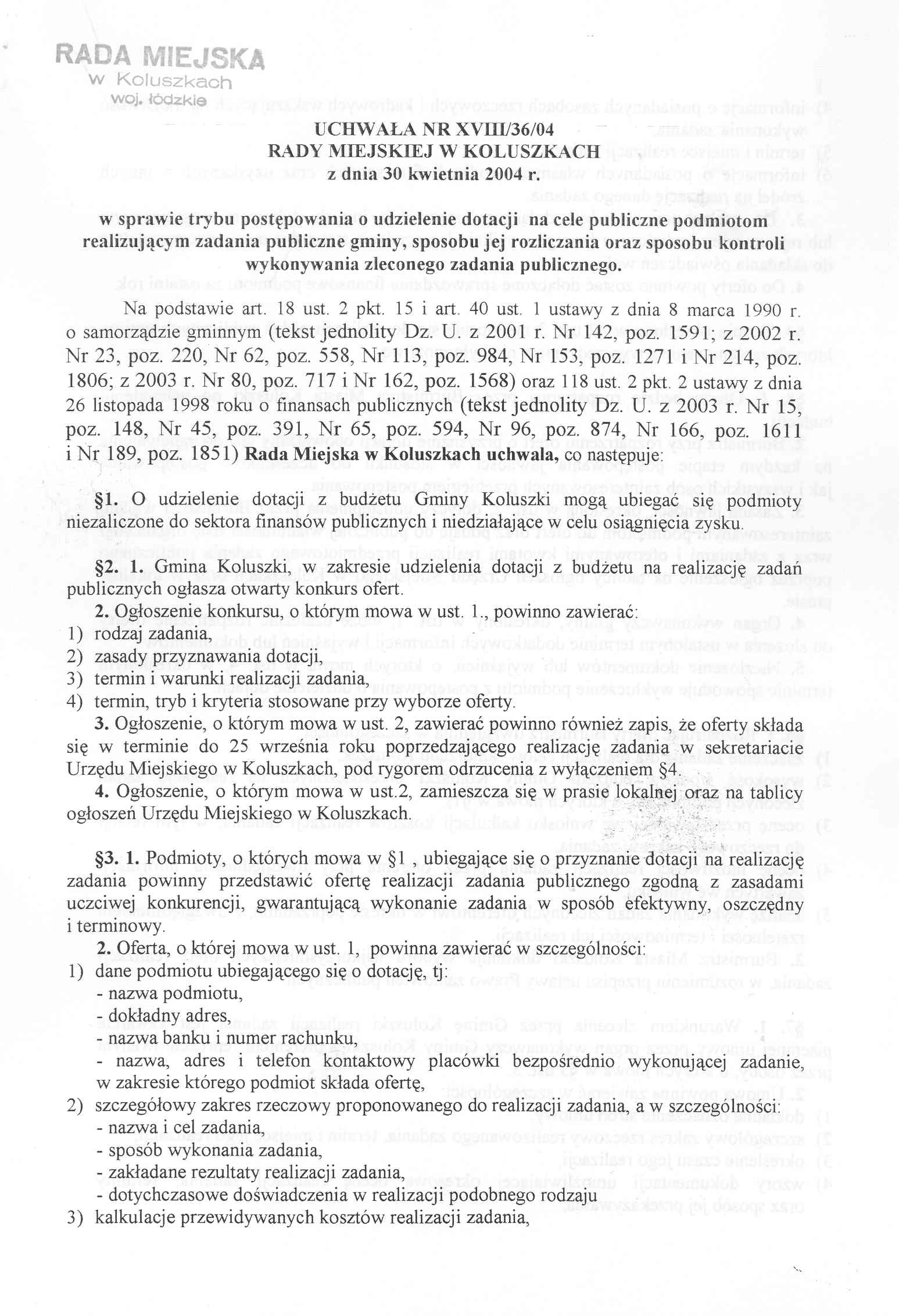 Uchwa艂a Rady Miejskiej w sprawie trybu postepowania o udzielenie dotacji na cele publiczne podmiotom realizuj膮cym zadania publiczne gminy, sposobu jej rozliczania oraz sposobu kontroli wykonywania zleconego zadania publicznego
