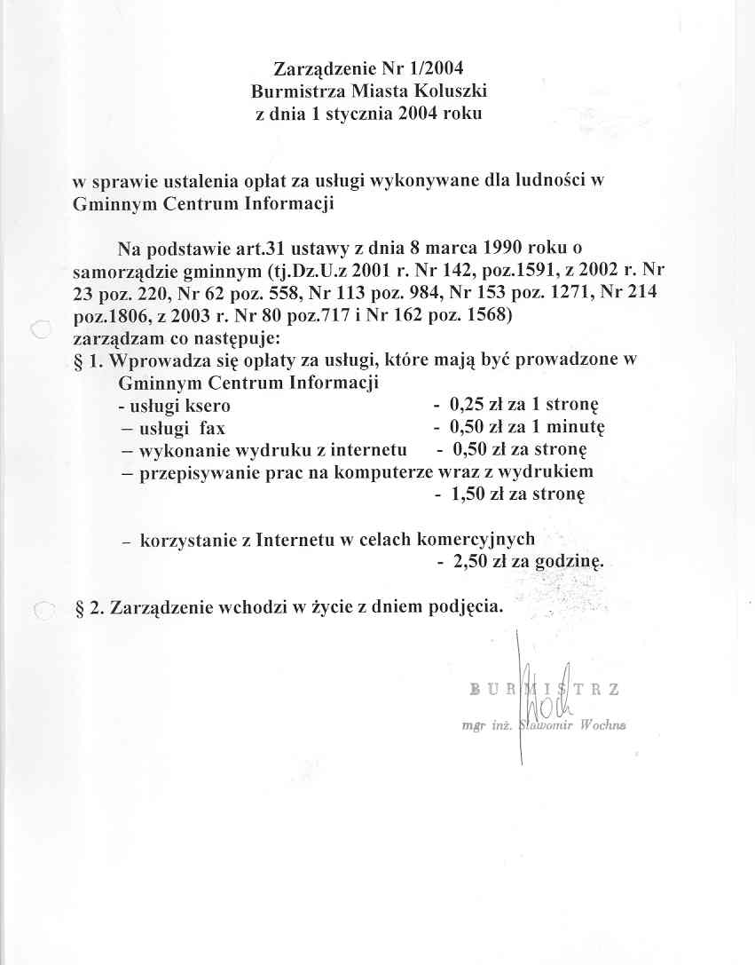 w sprawie ustalenia op艂at za us艂ugi wykonywane dla ludno艣ci w Gminnym Centrum Informacji